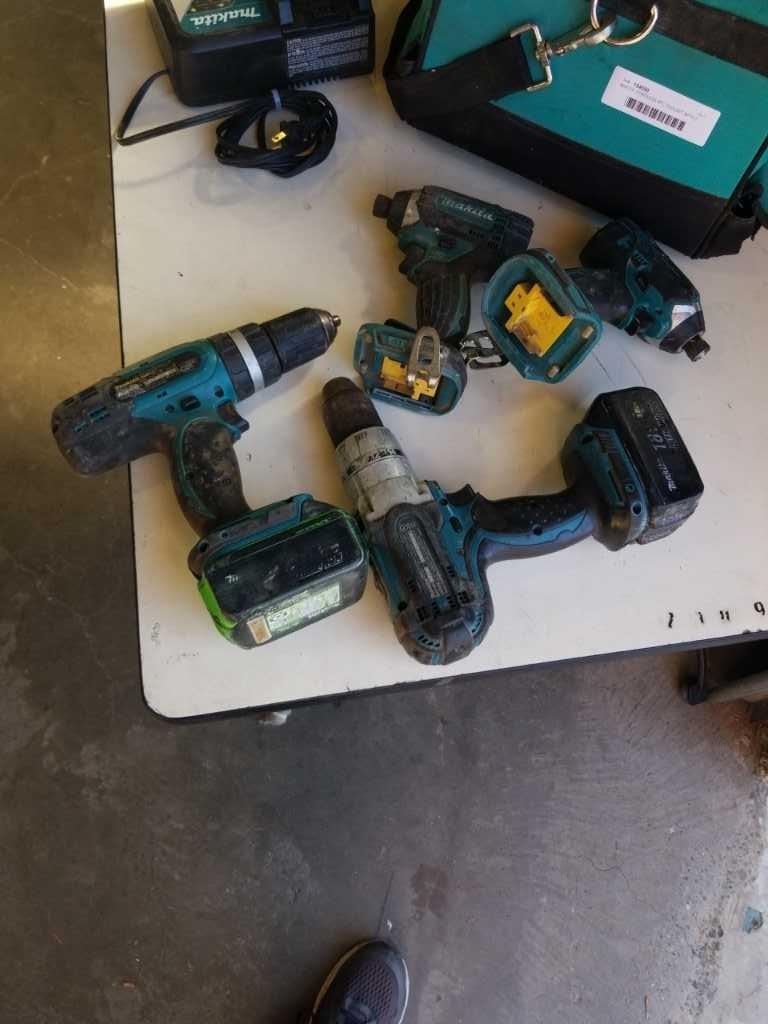 MAKITA CORDLESS 4PC TOOLSET WITH 2 BATTERIES AND CHARGER TESTED AND WORKING