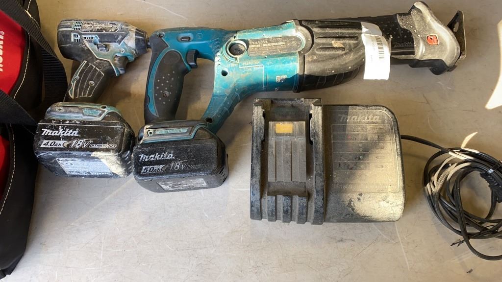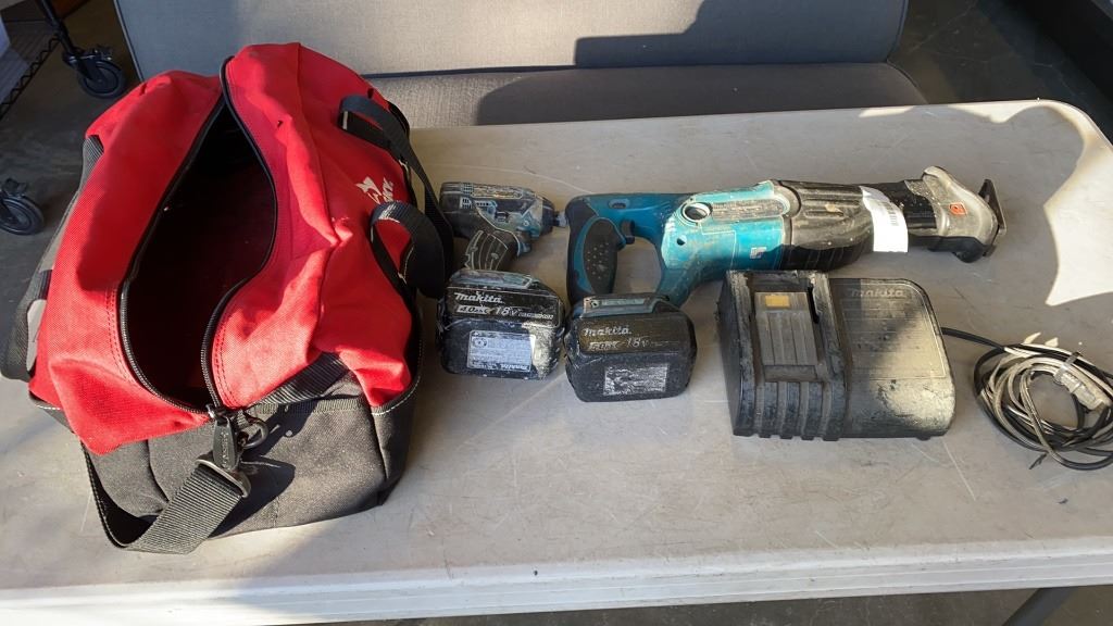 MAKITA CORDLESS TOOL SET - IMPACT GUN, SAWZALL, 2 BATTERIES AND CHARGER - TESTED AND WORKING