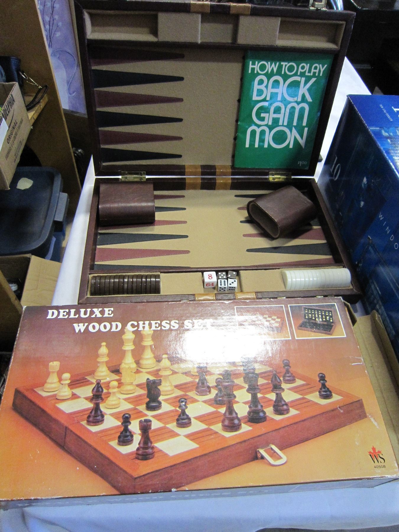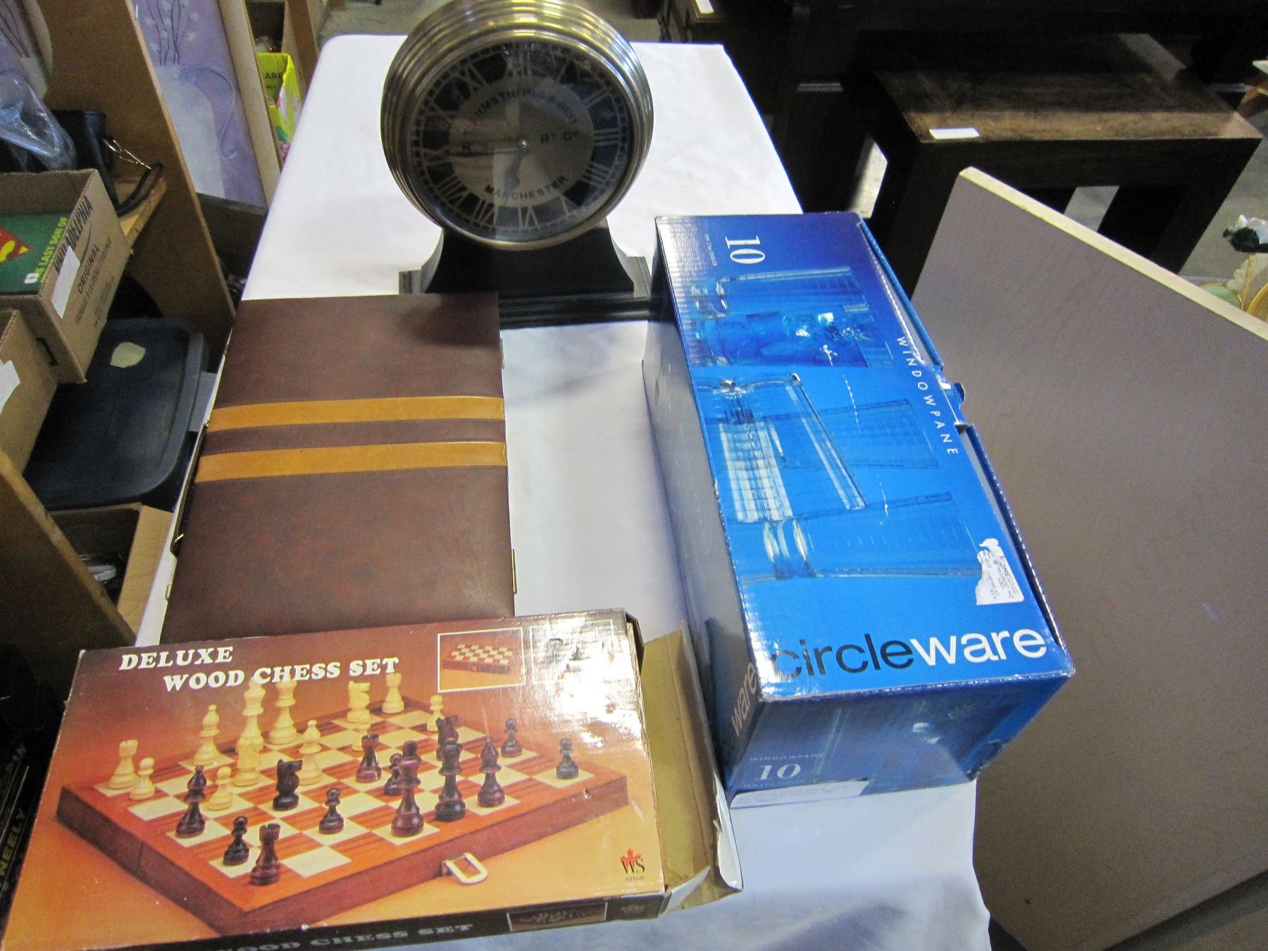 MANCHESTER MANTLE CLOCK, CHESS SET, 10 17OZ COOLERS, AND BACK GAMMON