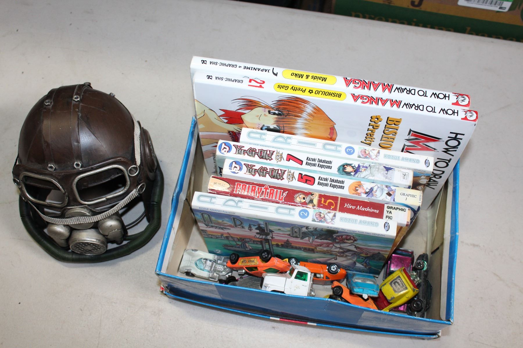 MANGA COMICS TOY CARS AND METAL HELMET DECORATION
