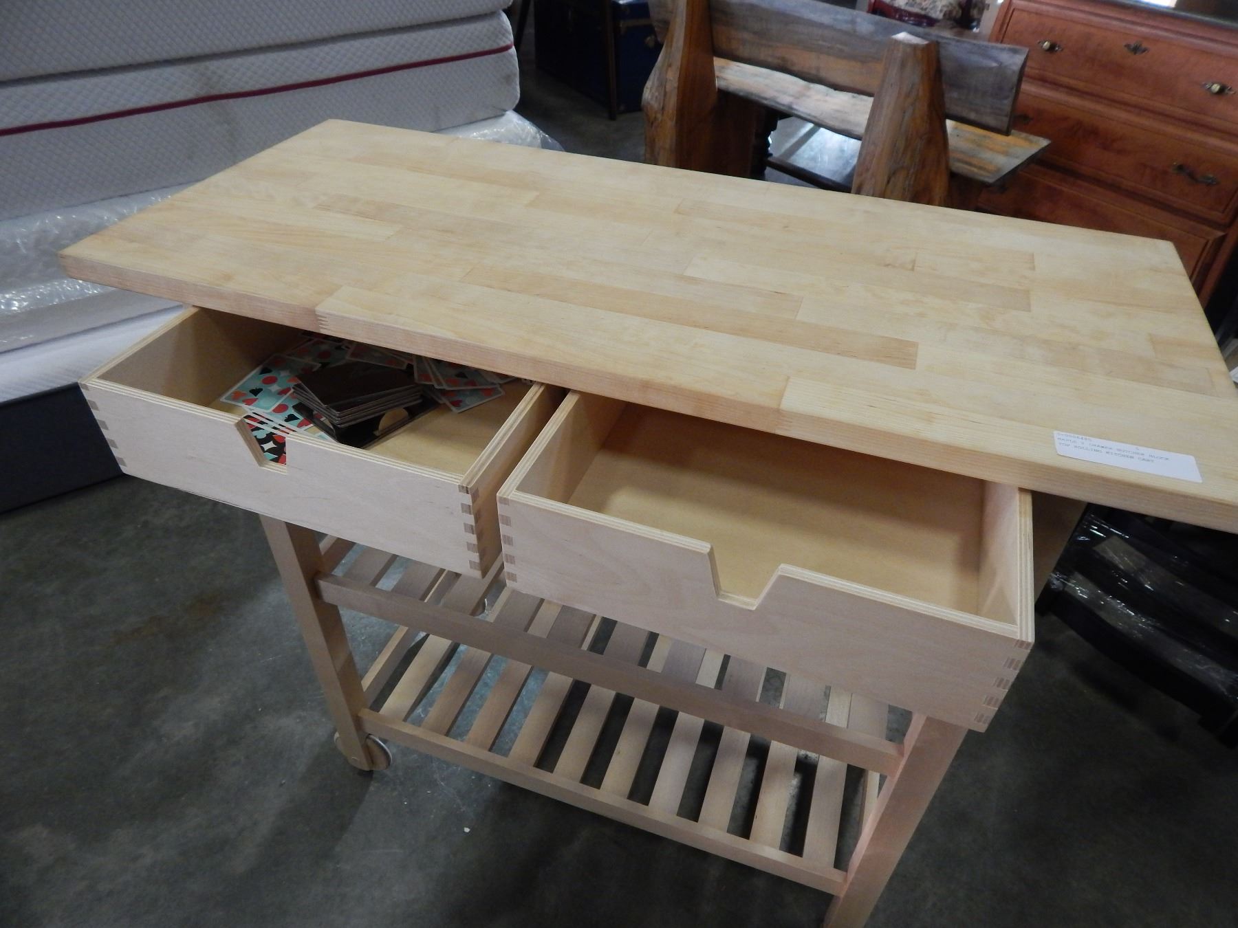 MAPLE 2 DRAWER BUTCHER BLOCK TOP ROLLING KITCHEN CART