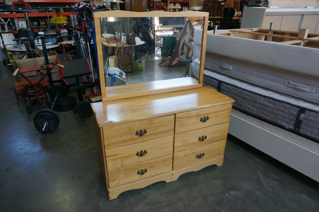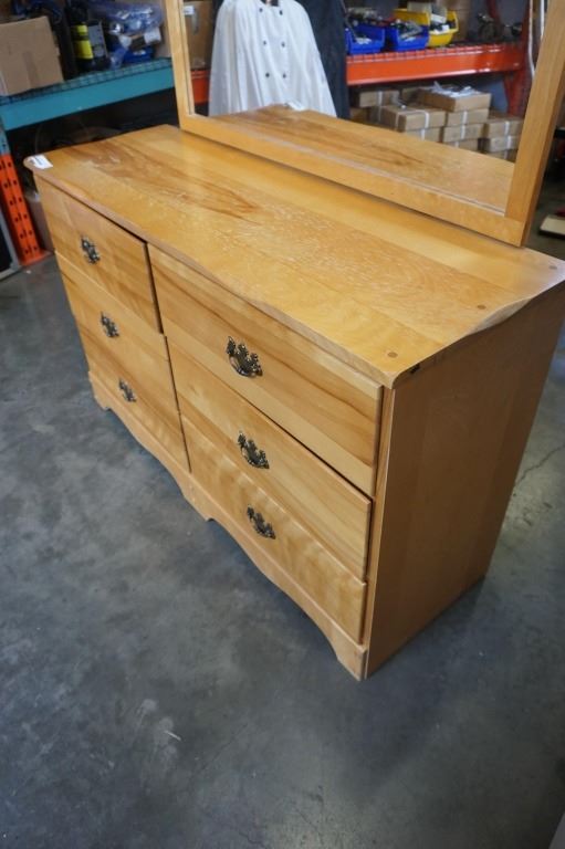 MAPLE 6 DRAWER DRESSER WITH MIRROR - 48.5 INCHES WIDE X 16 DEEP X 59 TALL WITH MIRROR