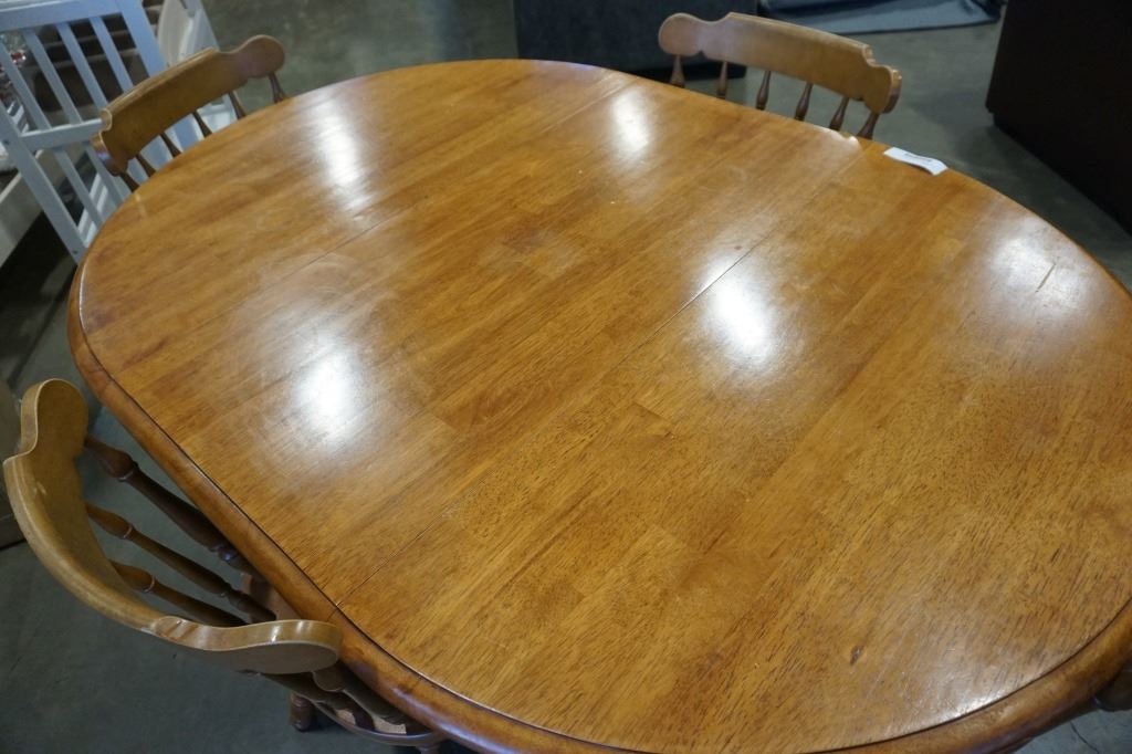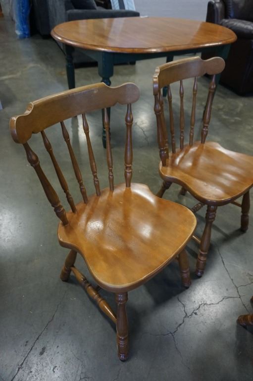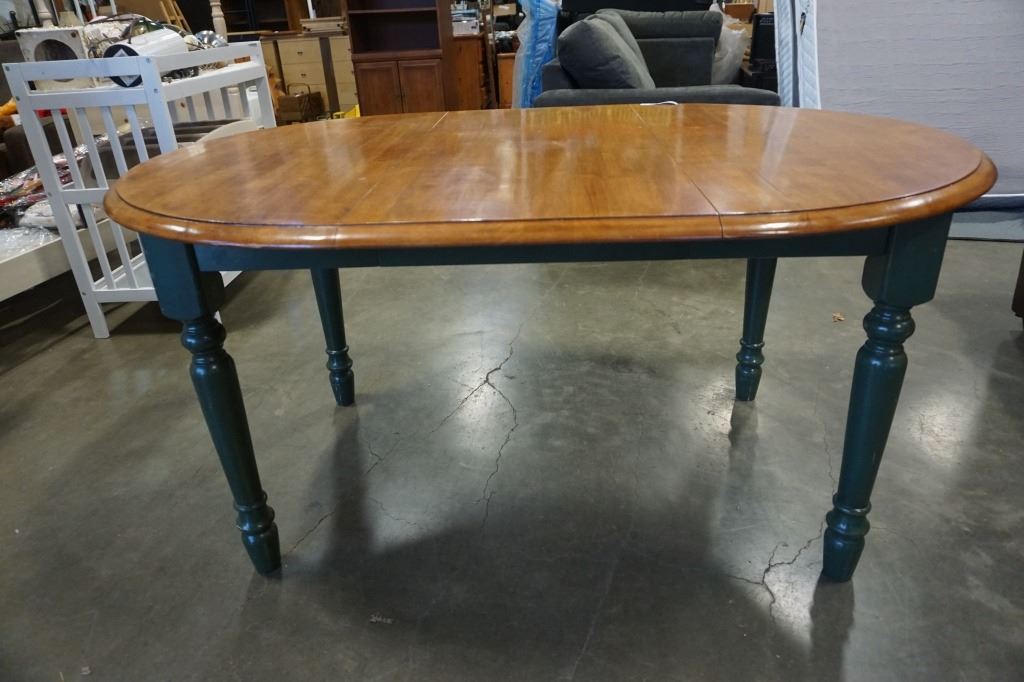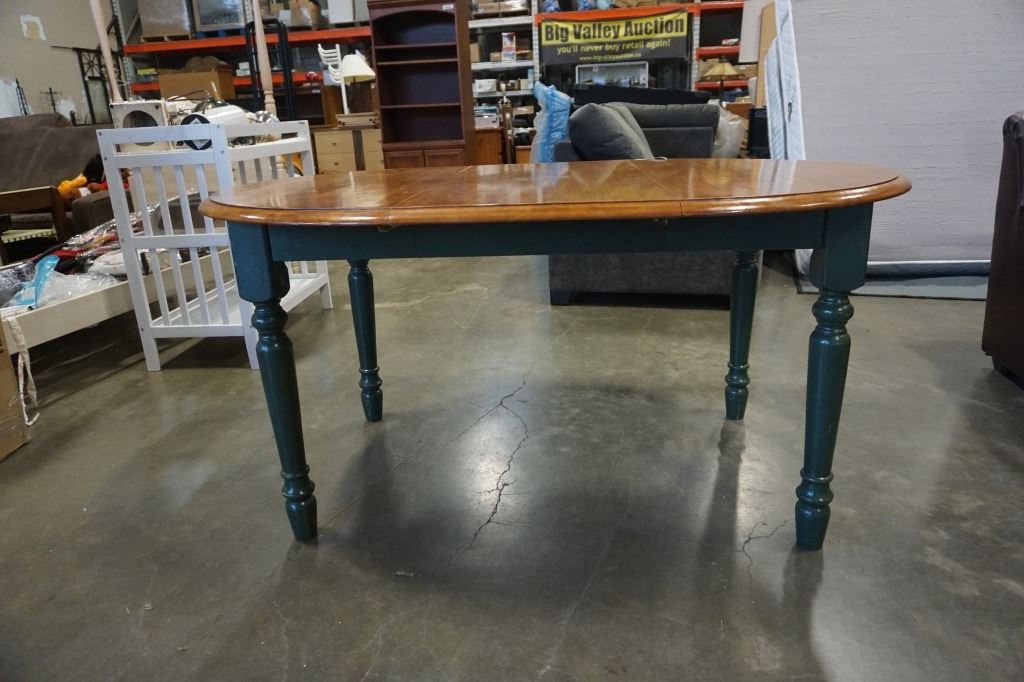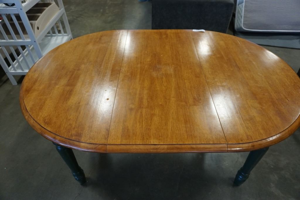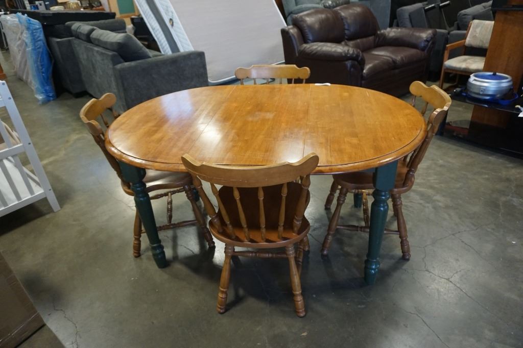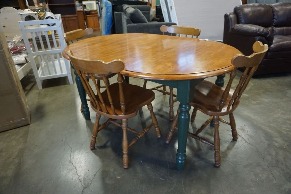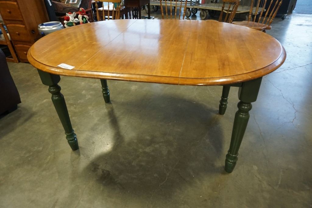 MAPLE AND GREEN DINING TABLE WITH LEAF AND 4 CHAIRS