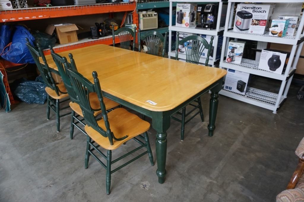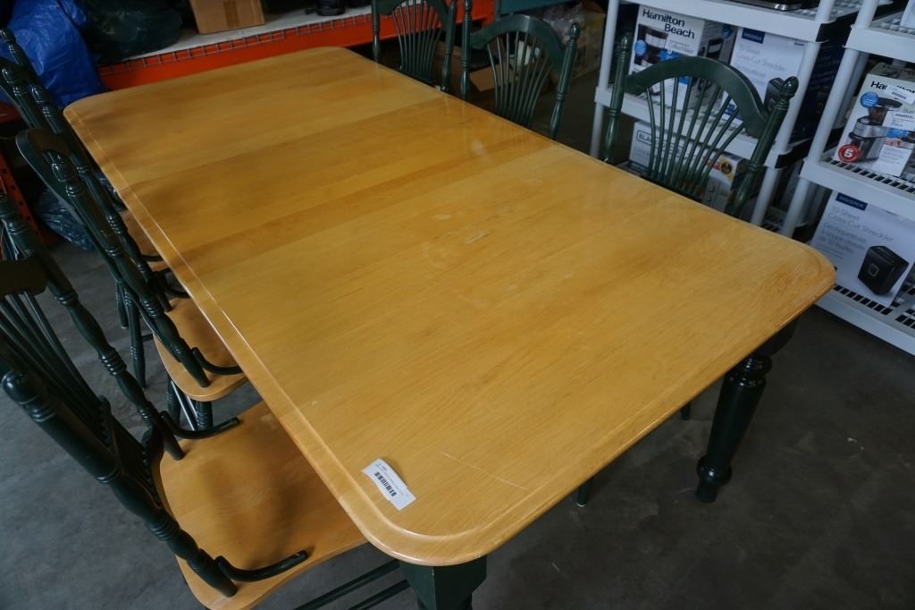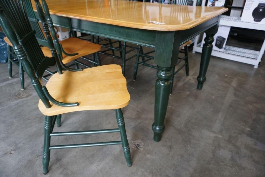 MAPLE AND GREEN DINING TABLE WITH LEAF AND 6 CHAIRS