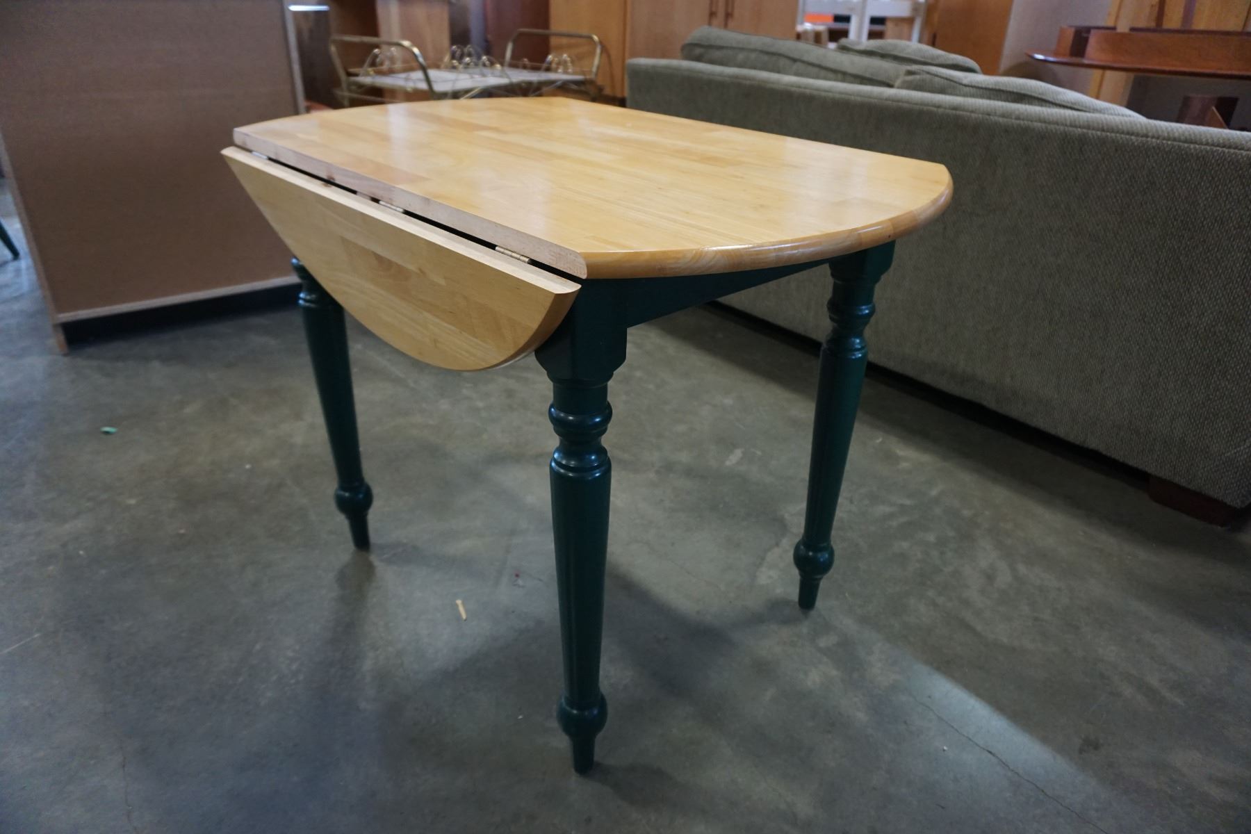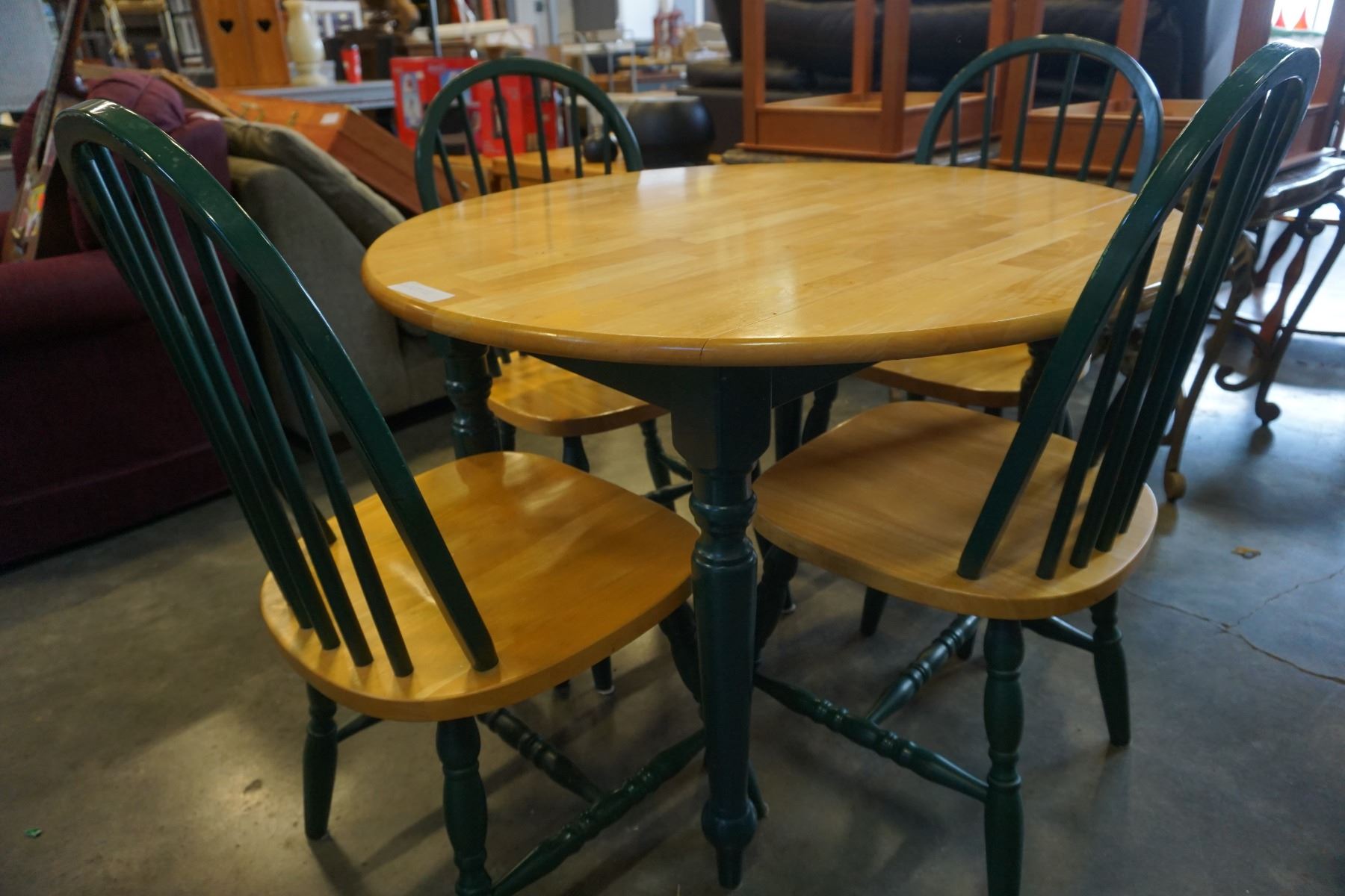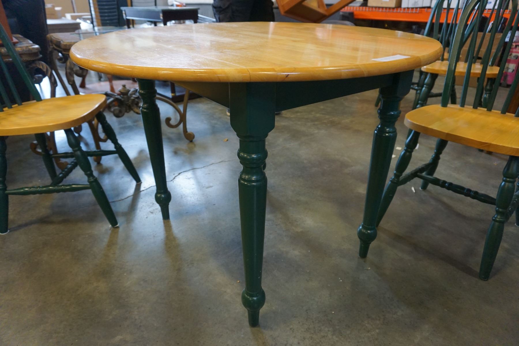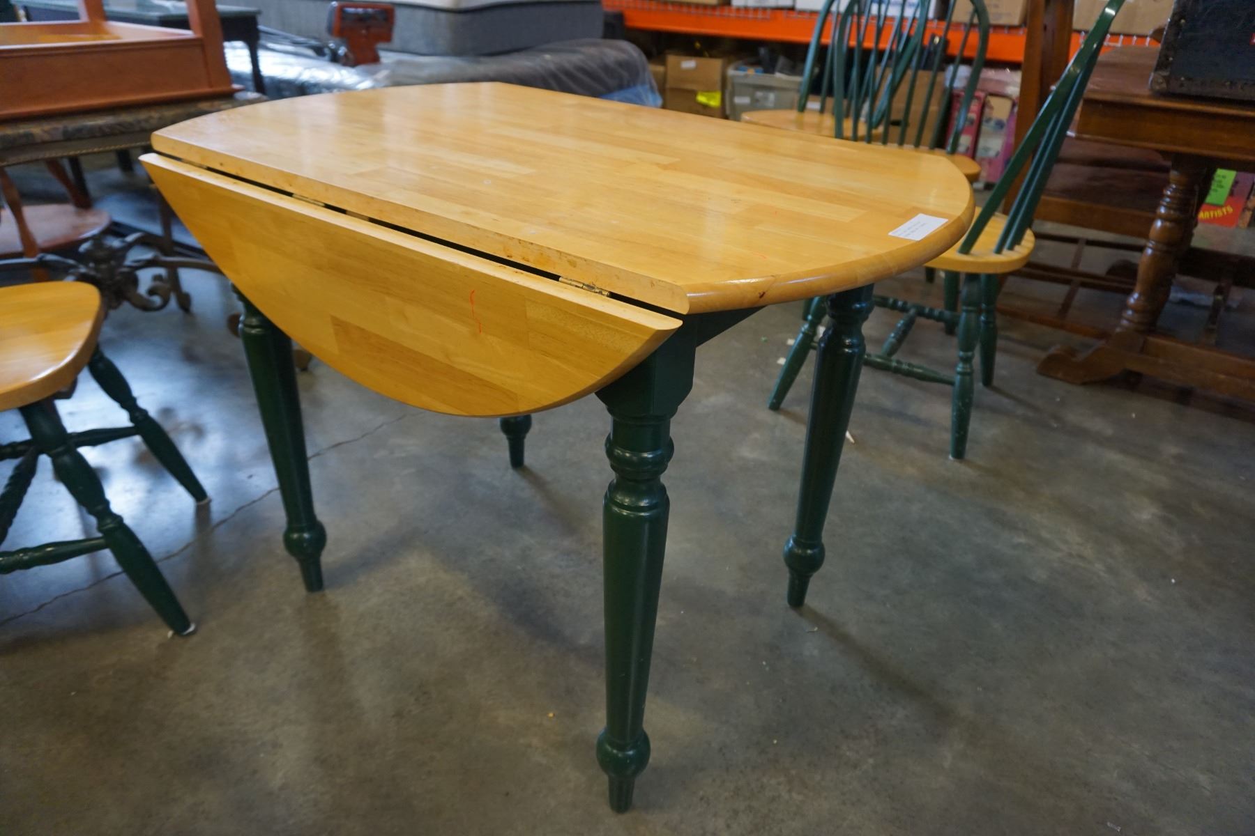 MAPLE AND GREEN DROPLEAF DINING TABLE W/ 4 CHAIRS