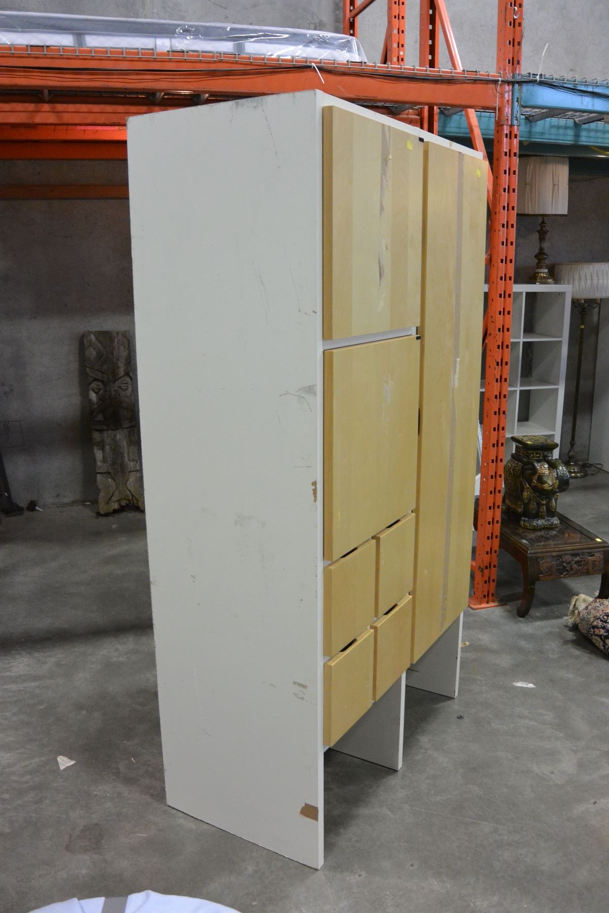 MAPLE AND WHITE 7 FOOT CUPBOARD