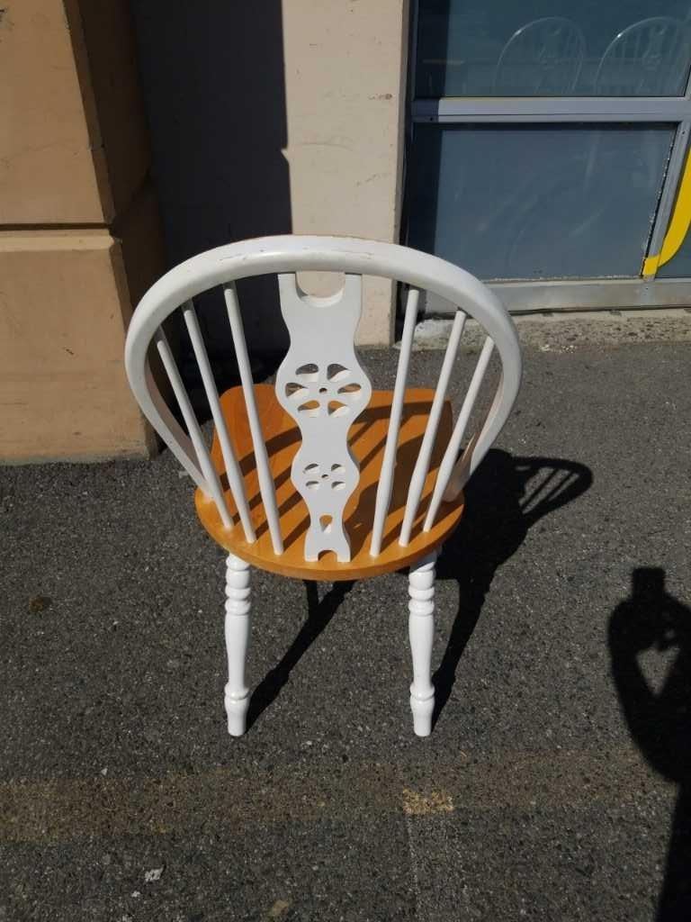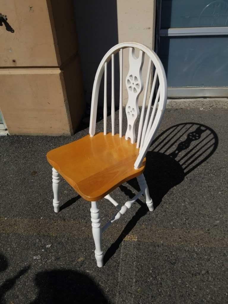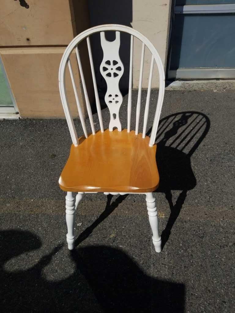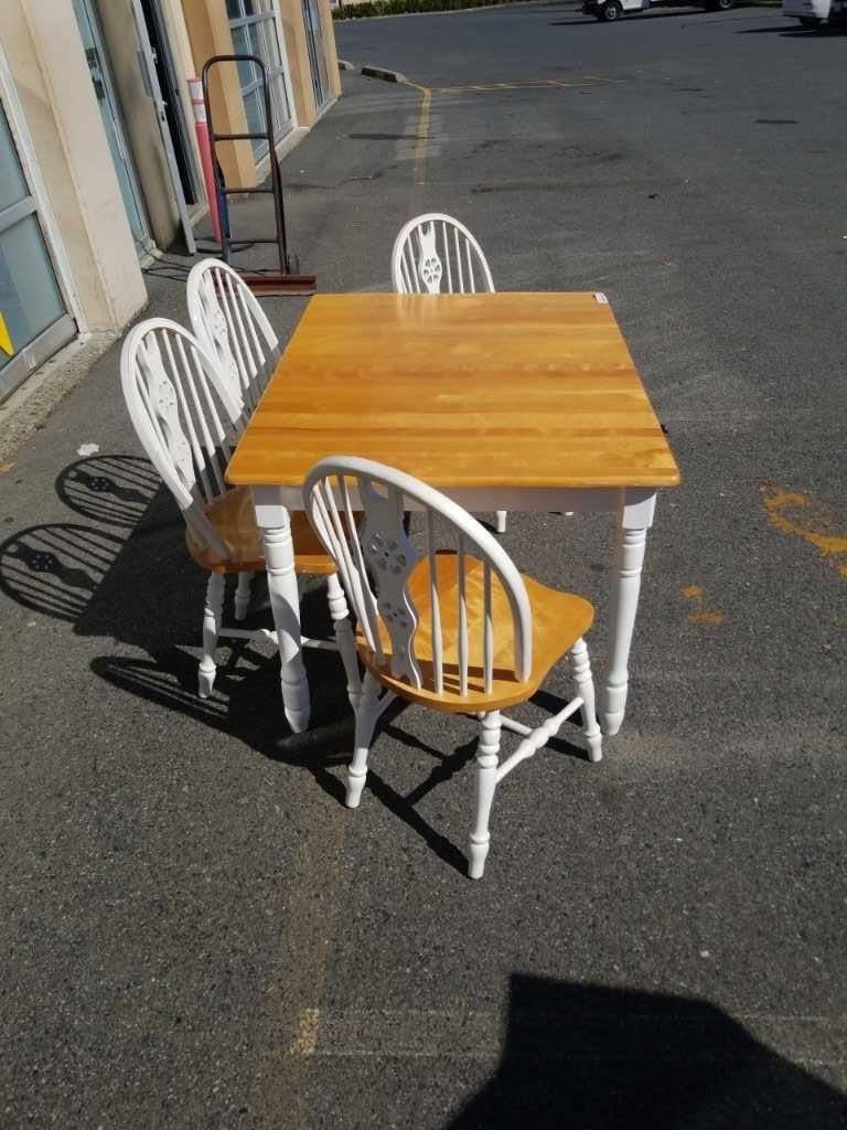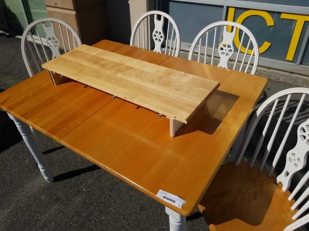 MAPLE AND WHITE DINING TABLE WITH LEAF AND 4 CHAIRS - 4 X 3 FOOT X 29 INCHES TALL WITH 12 INCH LEAF