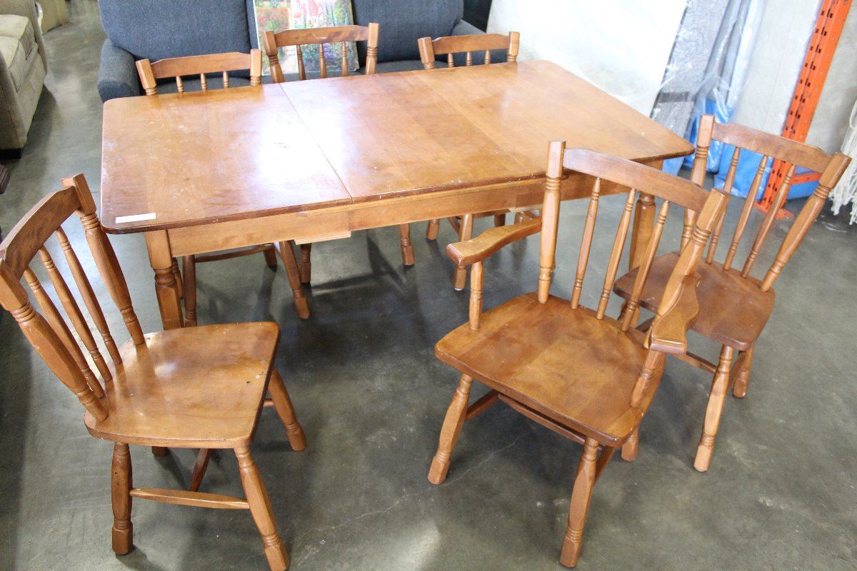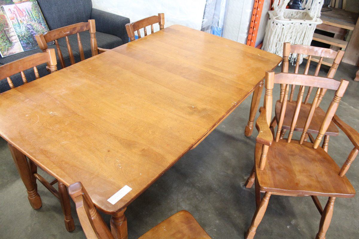 MAPLE DINING TABLE AND SIX CHAIRS TWO WITH ARMS