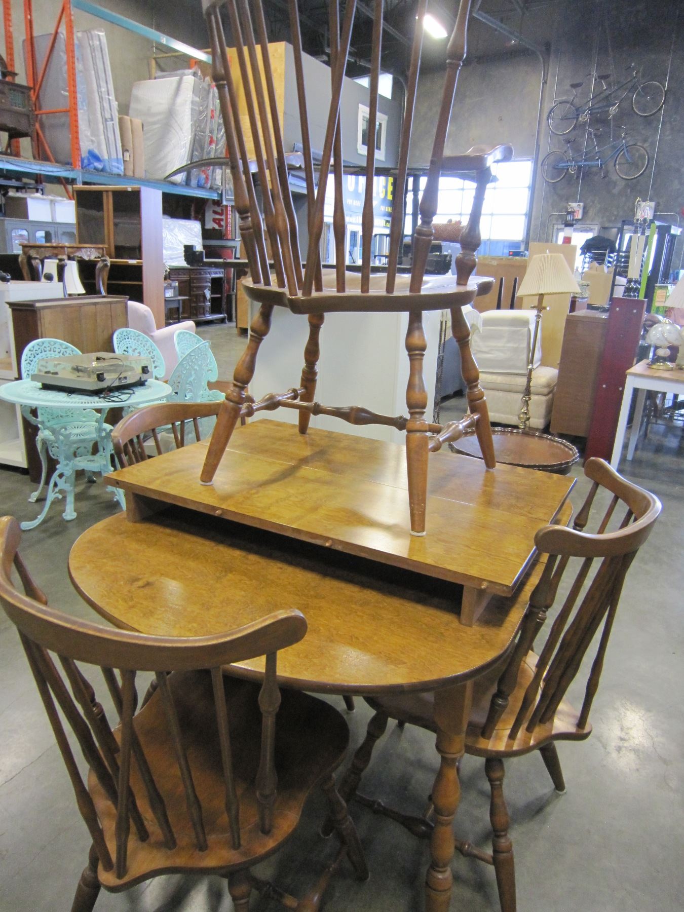 MAPLE DINING TABLE W/ 2 LEAFS AND 5 CHAIRS