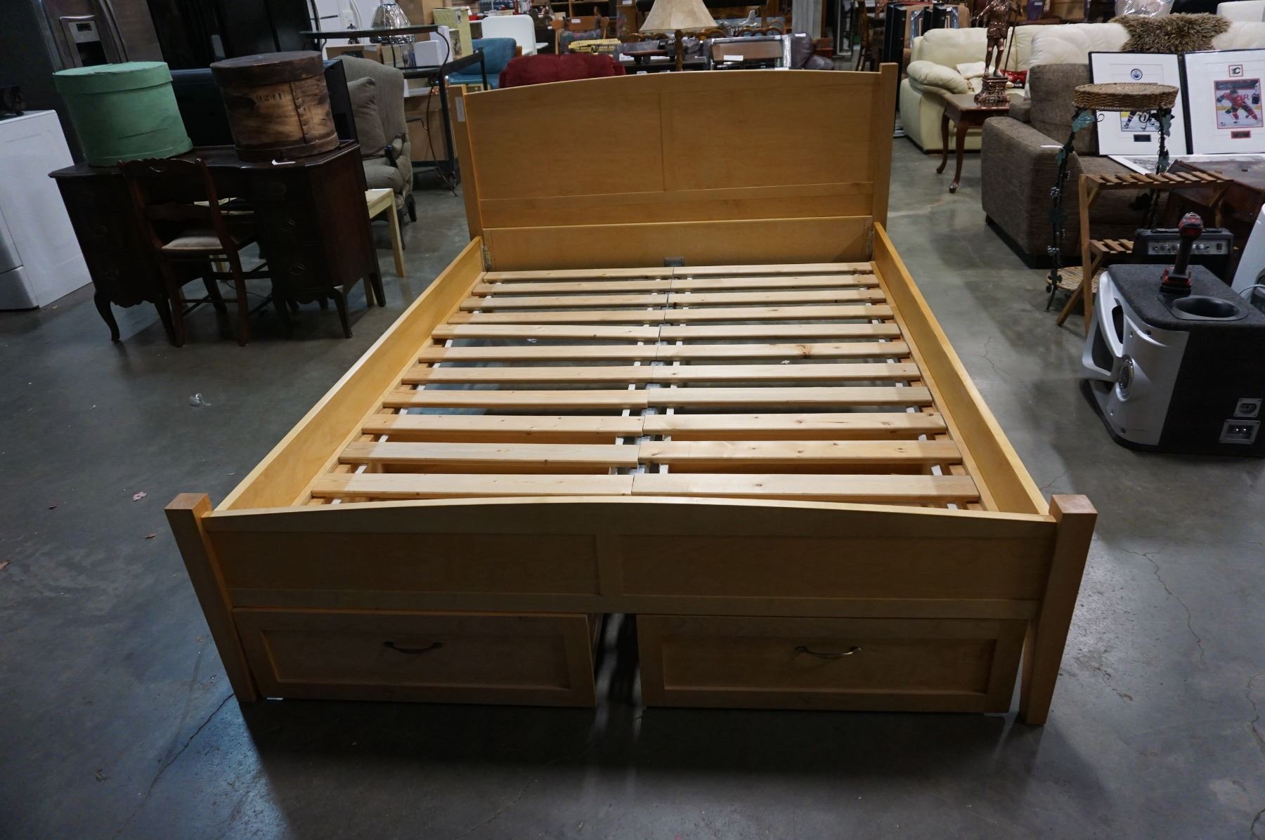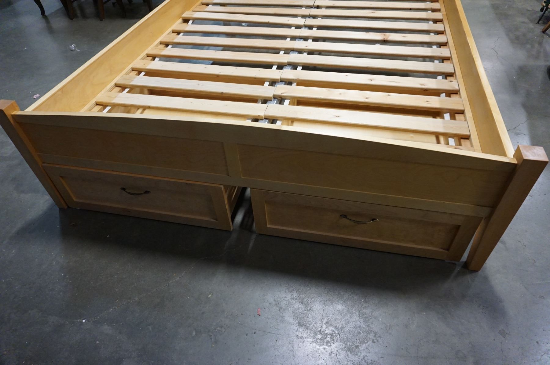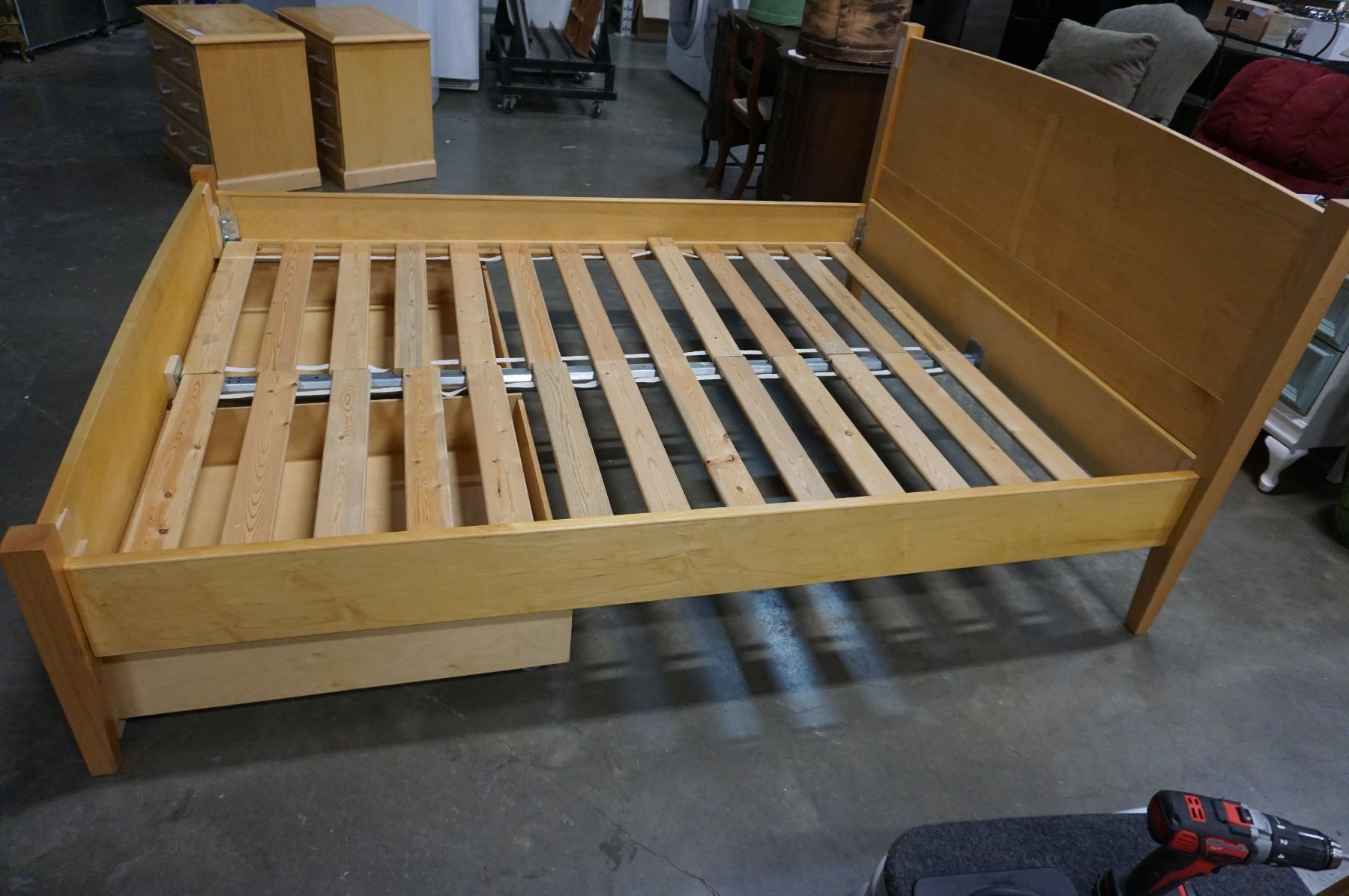 MAPLE QUEEN SIZE IKEA BEDFRAME W/ UNDERBED STORAGE DRAWER
