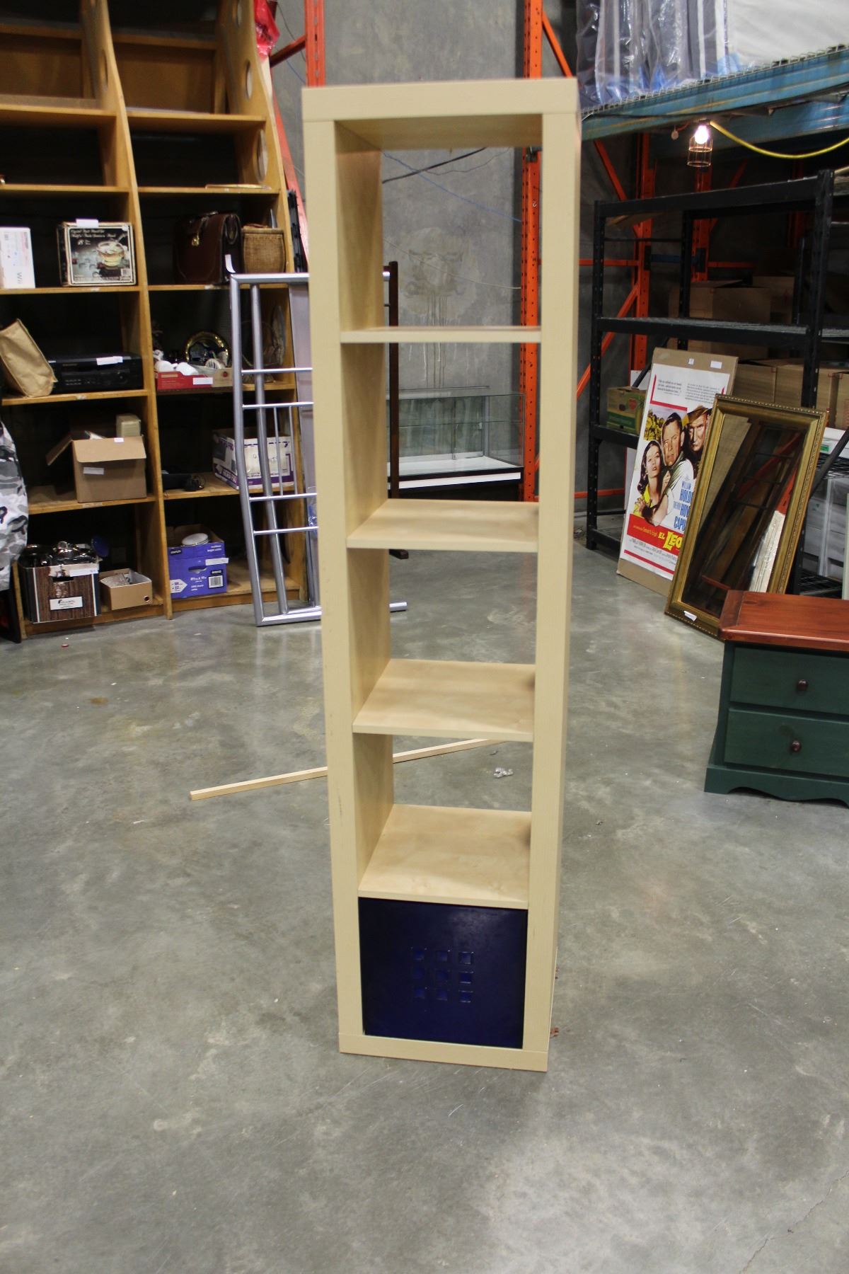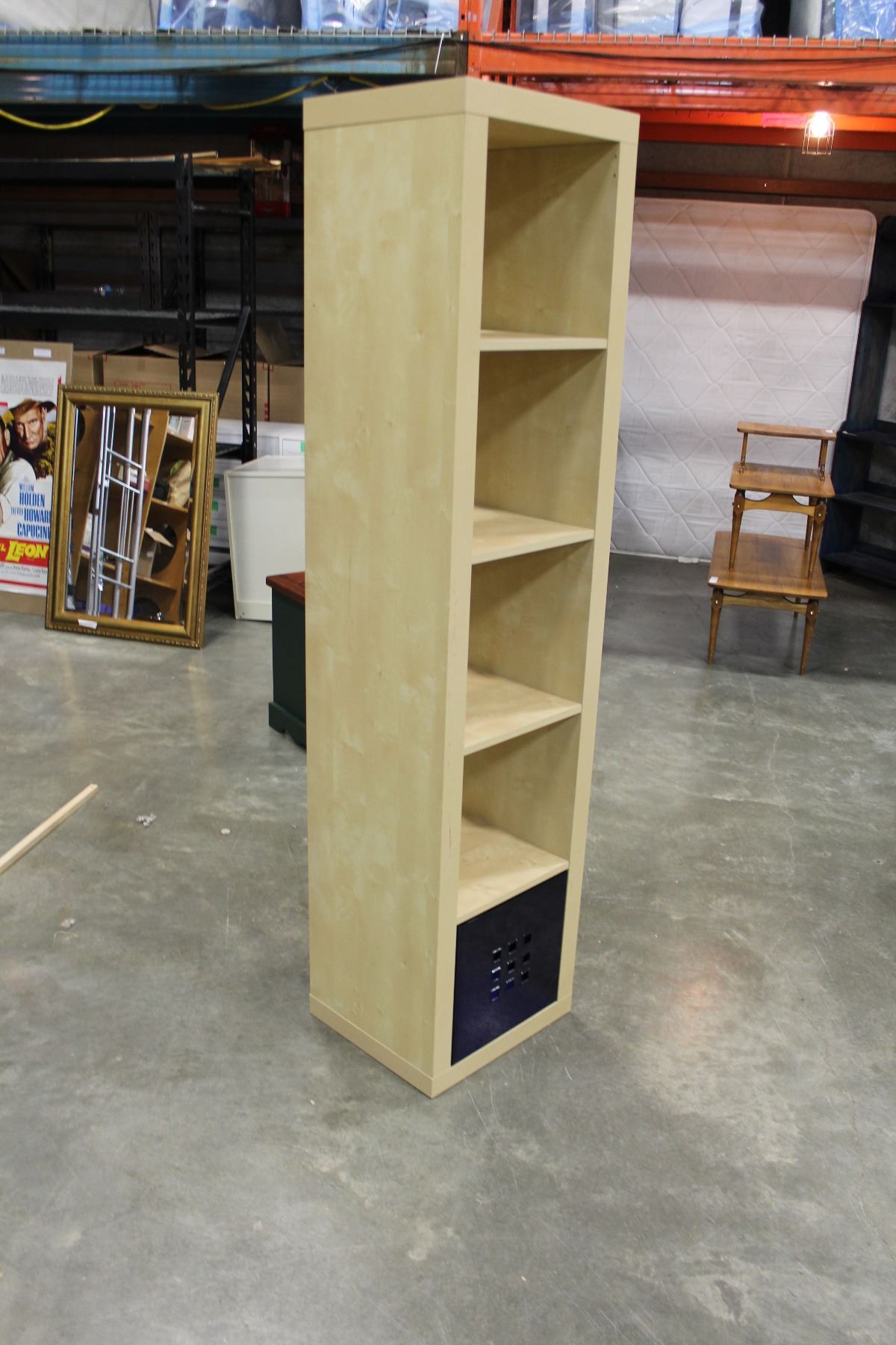 MAPLE SIX FOOT CUBE SHELF WITH PLASTIC DRAWERS