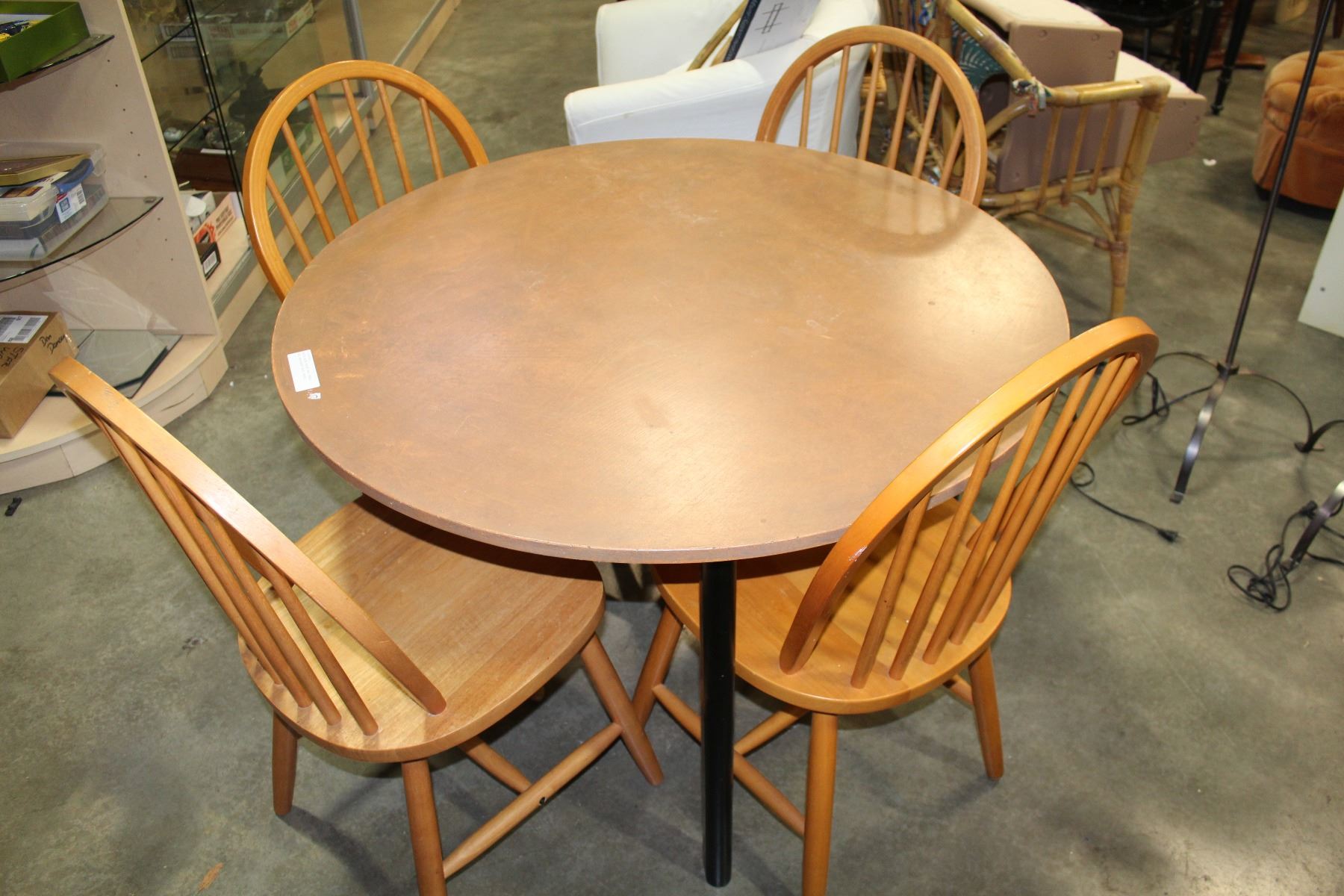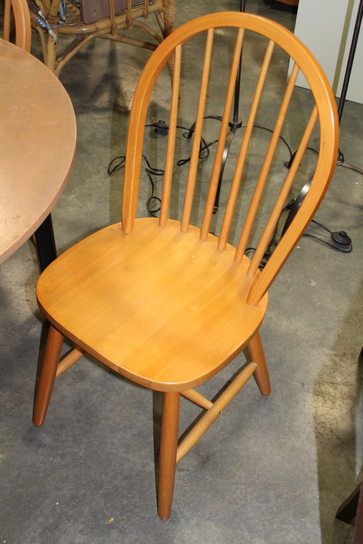 MAPLE WITH BLACK BASE TABLE AND FOUR HOOPBACK CHAIRS