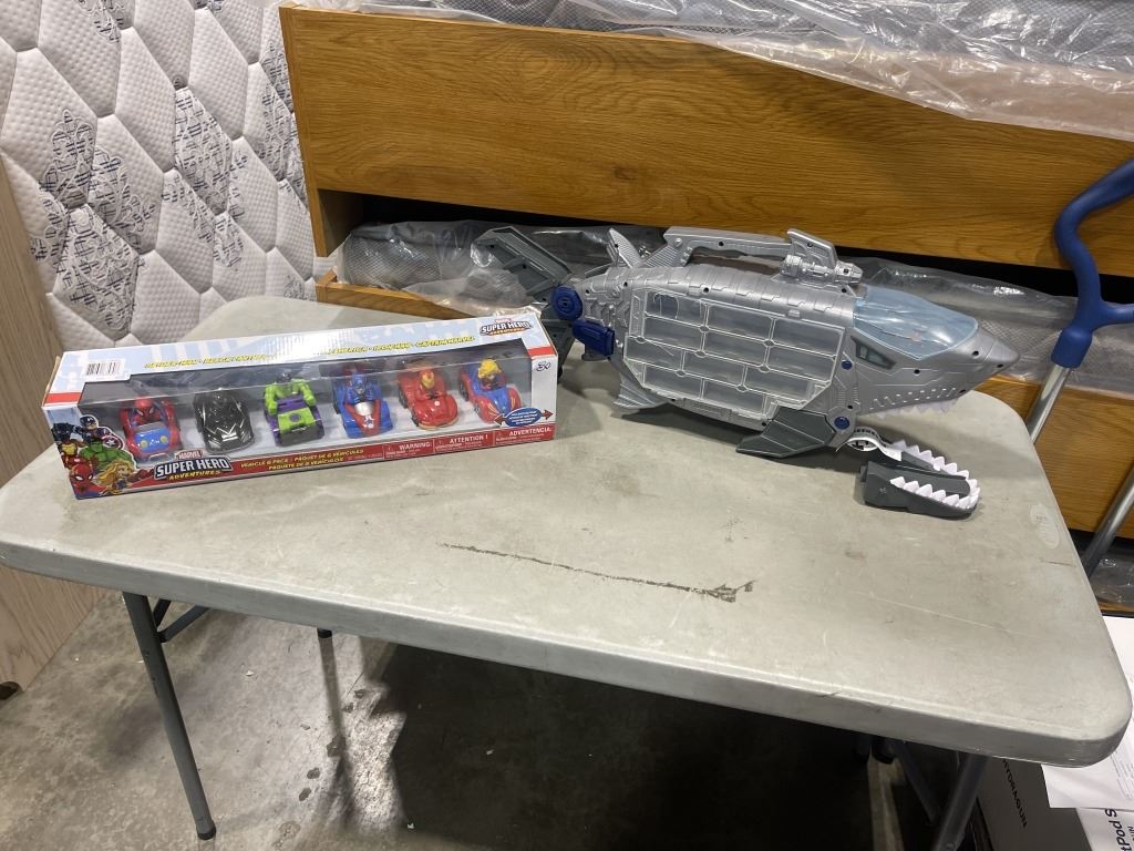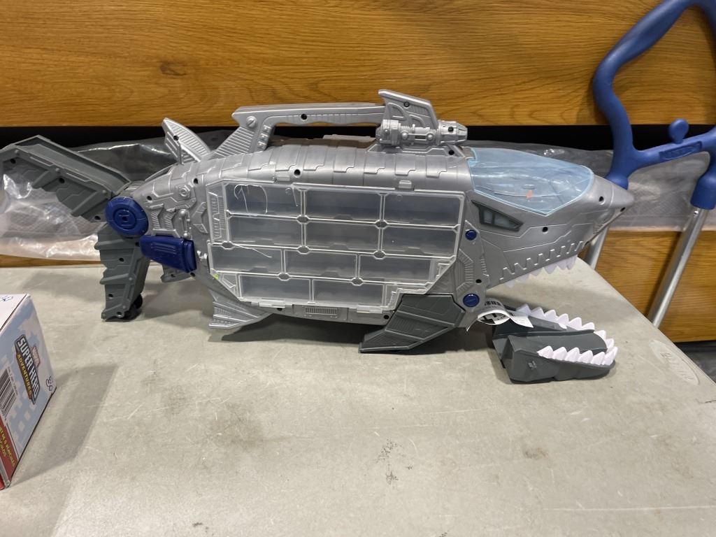 MARVEL SUPER HERO CARS AND SHARK HOTWHEEL STORAGE