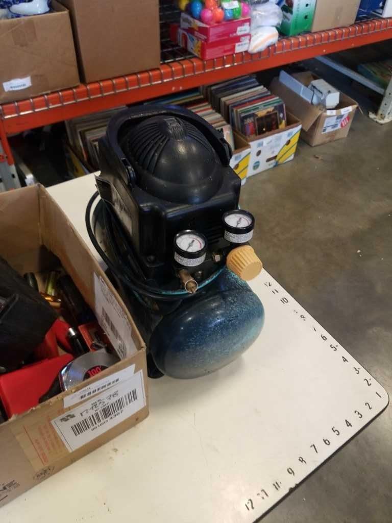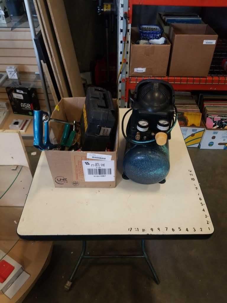 MASTERCRAFT 1 GALLON AIR COMPRESSOR WITH BOX OF TOOLS