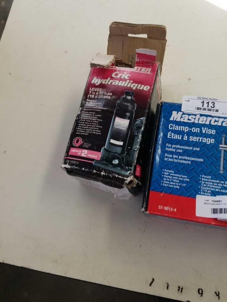 MASTERCRAFT CLAMP ON VICE AND MOTOR MASTER HYDRAULIC JACK