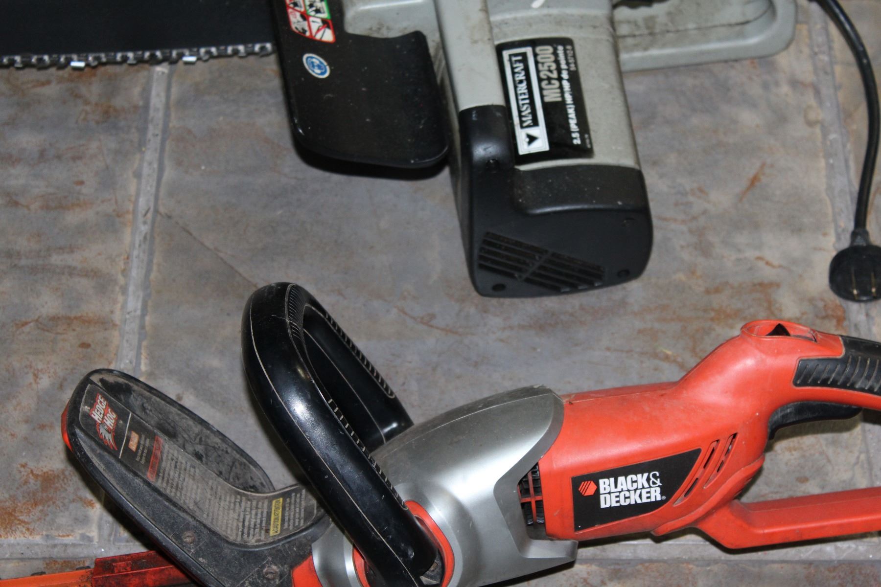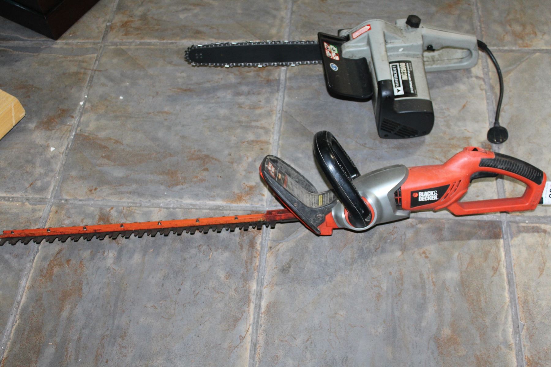 MASTERCRAFT ELECTRIC HEDGE TRIMMER AND BLACK AND DECKER ELECTRIC CHAINSAW