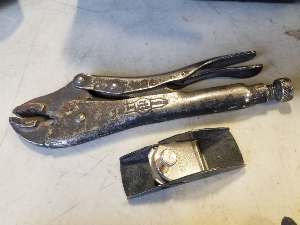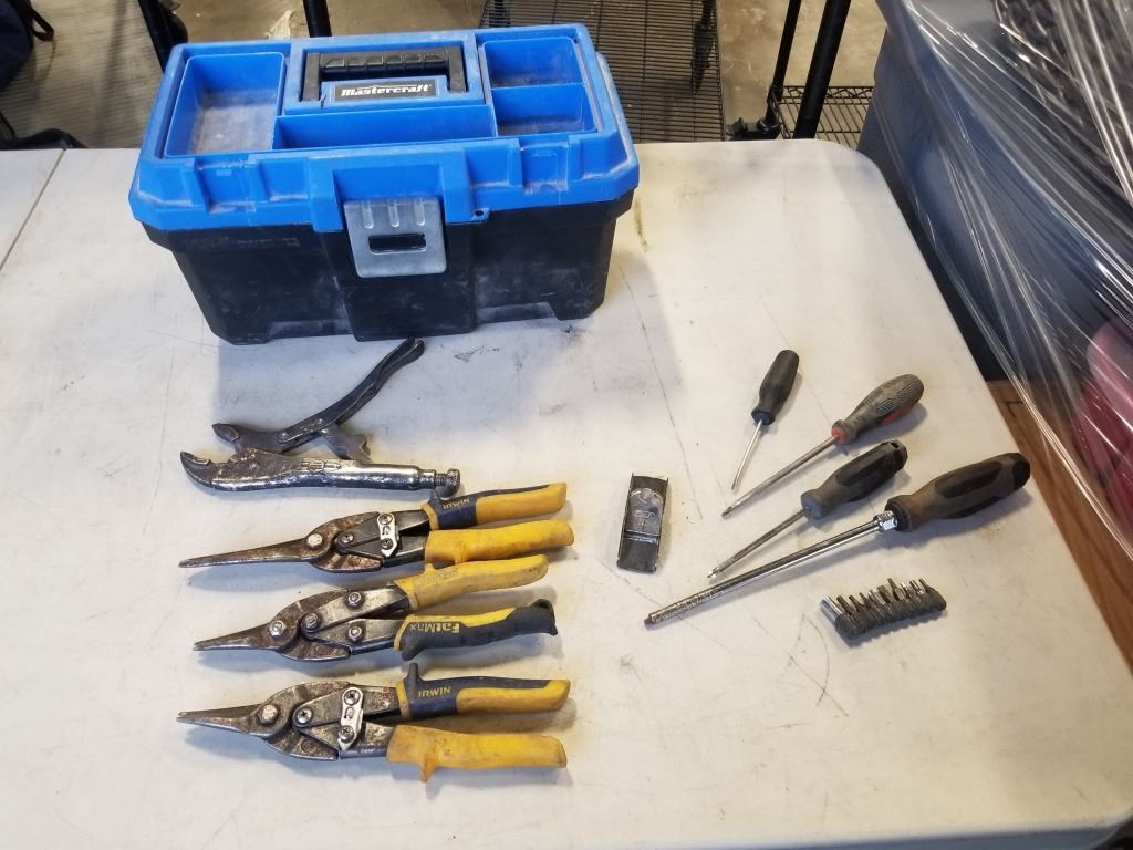 MASTERCRAFT TOOLBOX WITH SNIPS, SCREWDRIVERS, VICE GRIP AND MINI STANLEY PLANER
