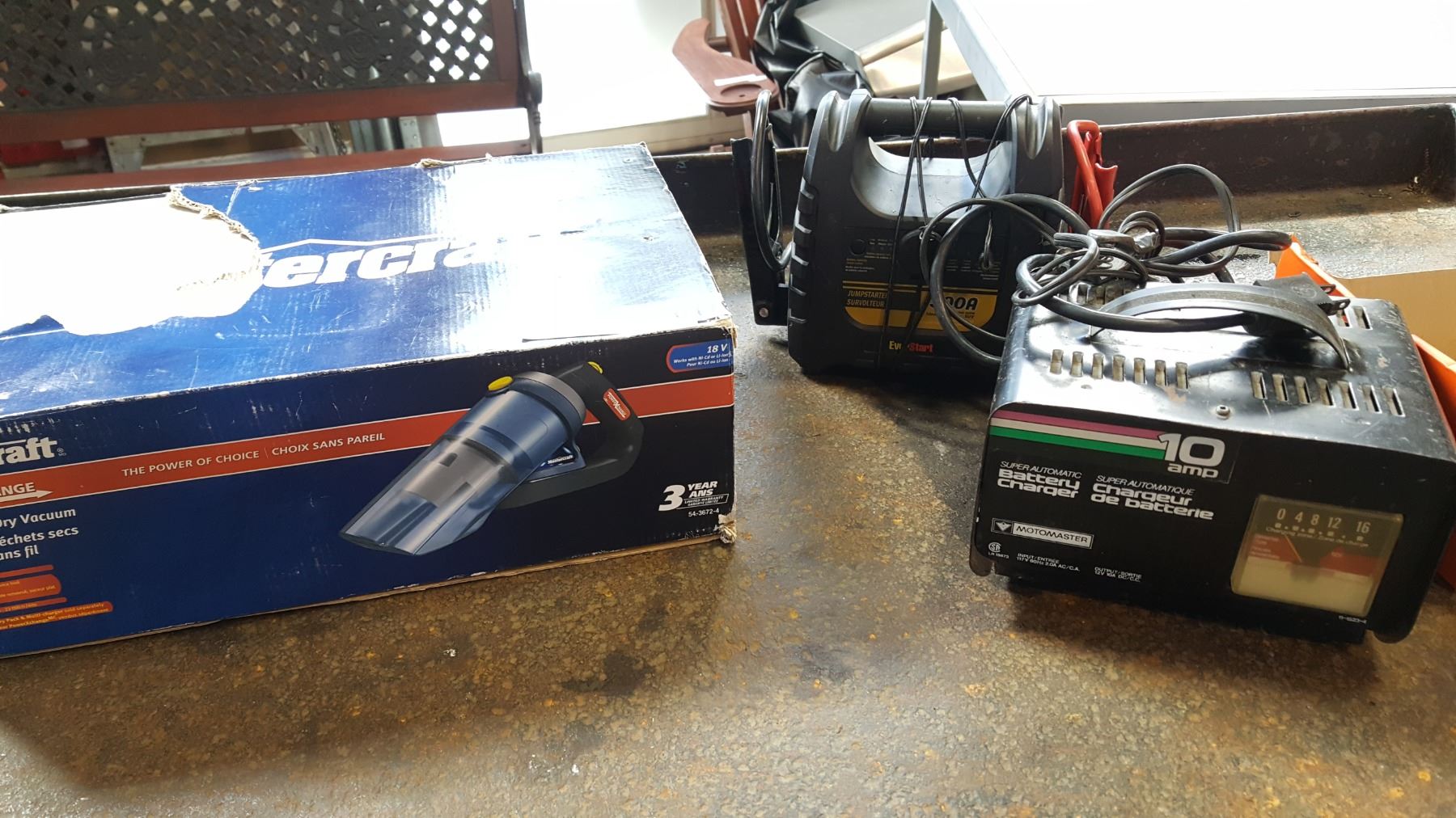 MASTERCRAFT WET DRY VAC AND 2 BATTERY CHARGERS