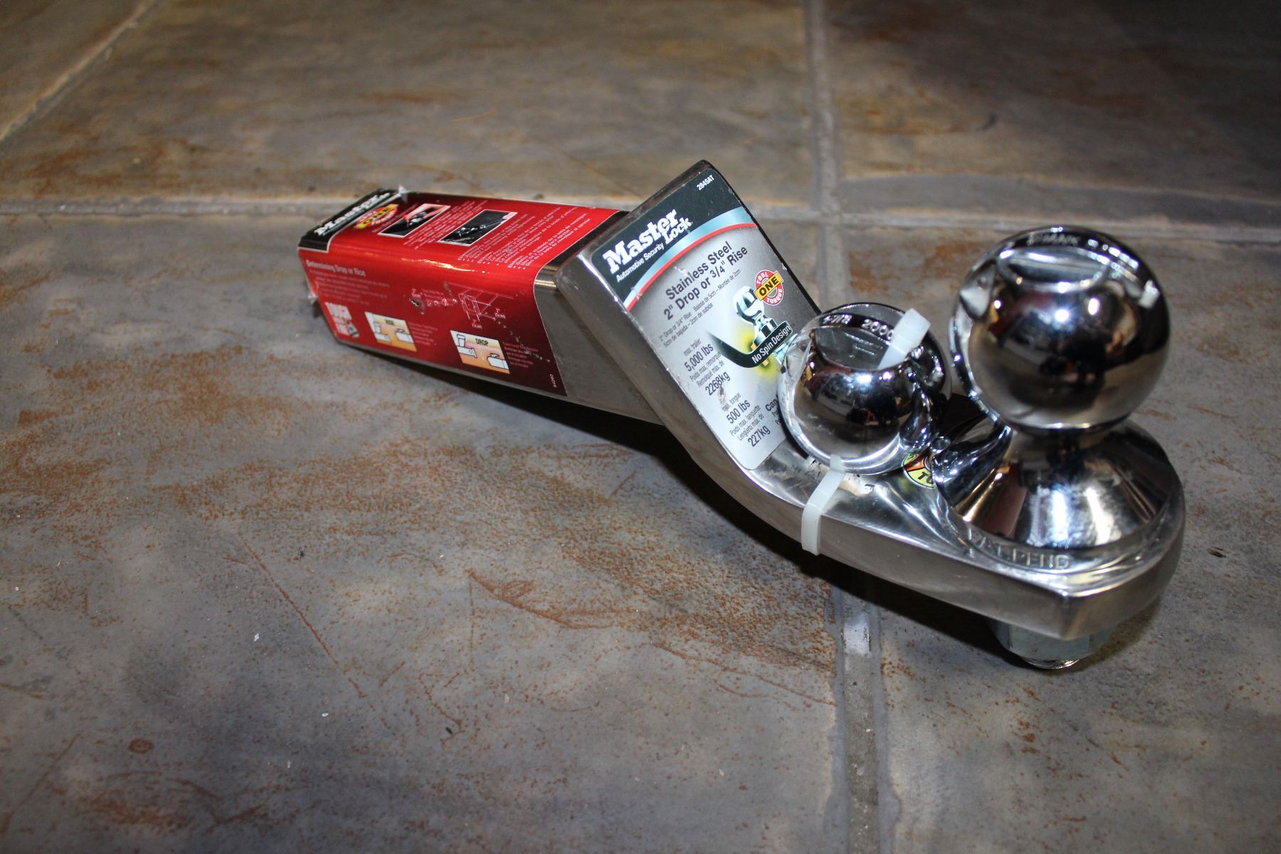 MASTERLOCK STAINLESS 2 INCH DROP 3/4 INCH RISE 6000LB HITCH WITH INTER CHANGEABLE 2 INCH BALL AND 1 7/8 INCH BALL