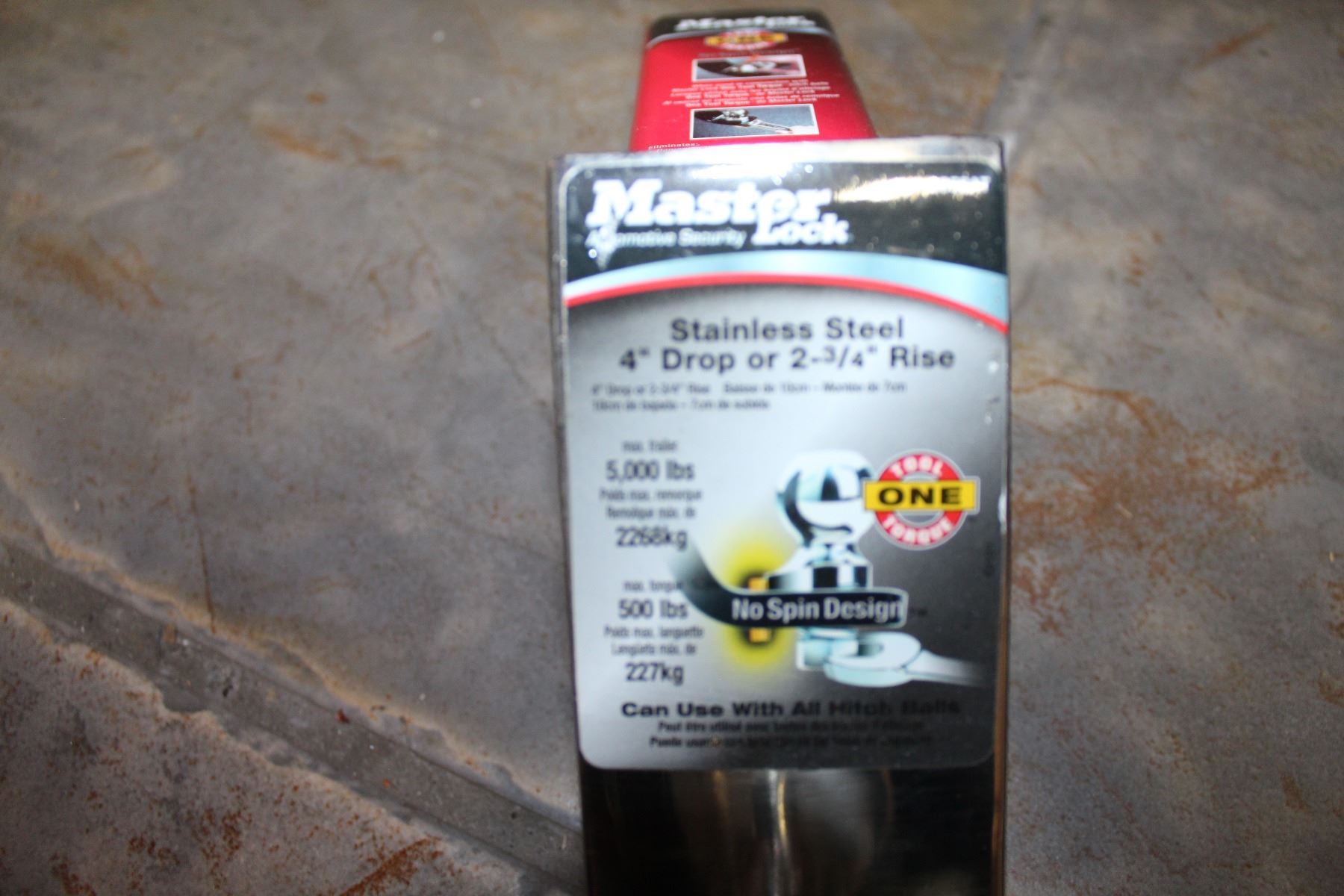 MASTERLOCK STAINLESS 4 INCH DROP 2 3/4 INCH RISE 5000LB HITCH WITH INTERCHANGEABLE 2 5/16 INCH BALL