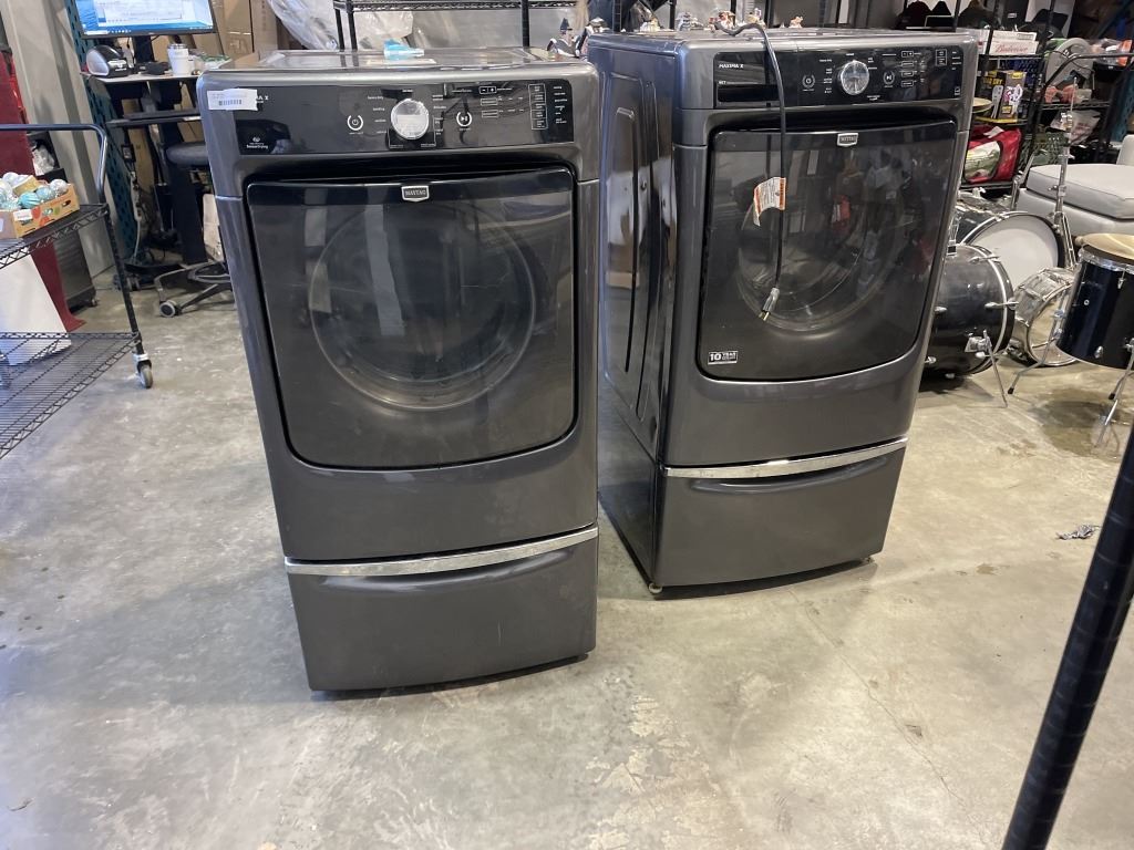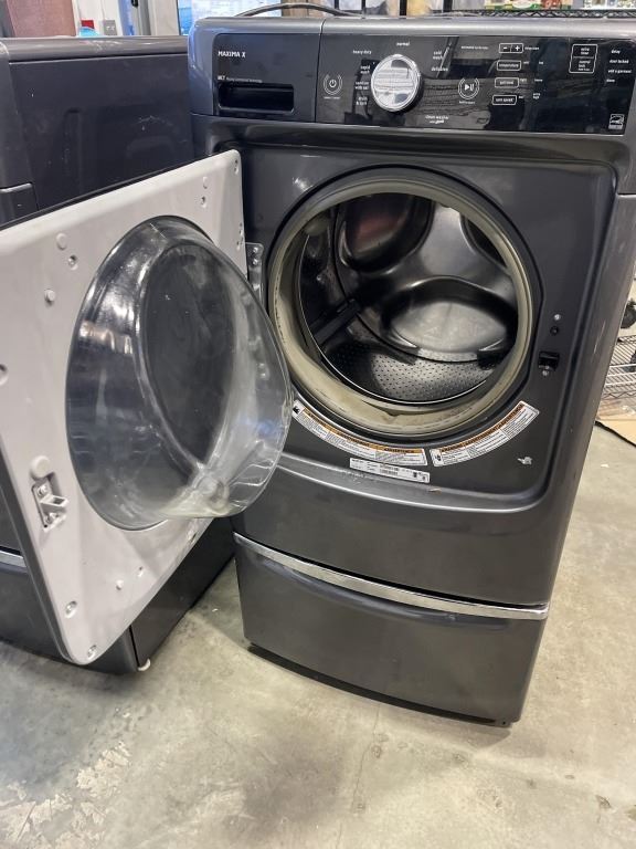 MAXIMA FRONT LOAD WASHER AND DRYER W/ PEDASTAL STANDS