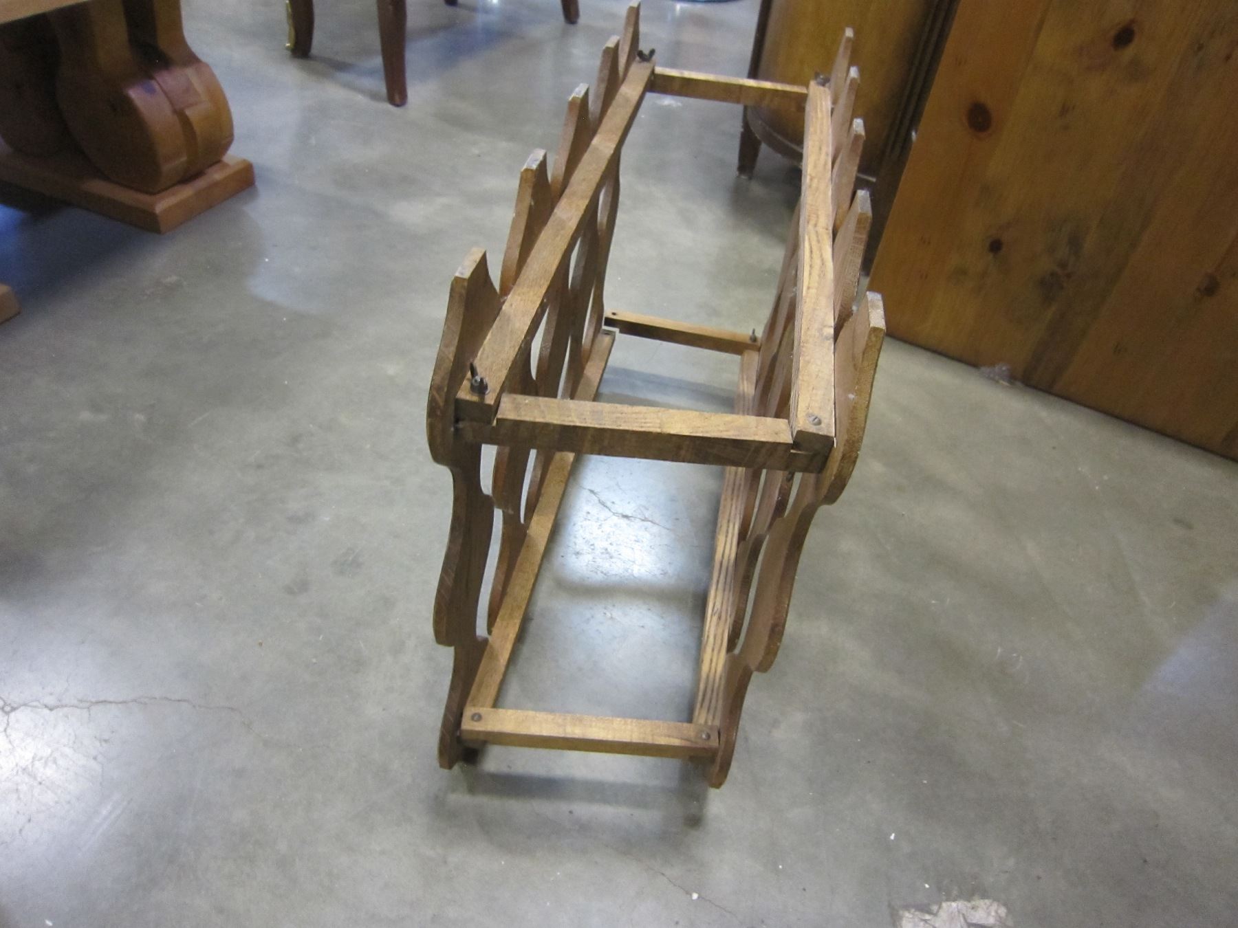 MCM MAGAZINE RACK W/ SHELF AND ANTIQUE WINE RACK