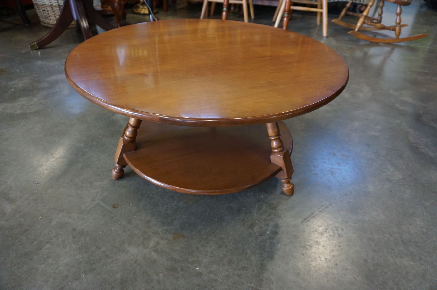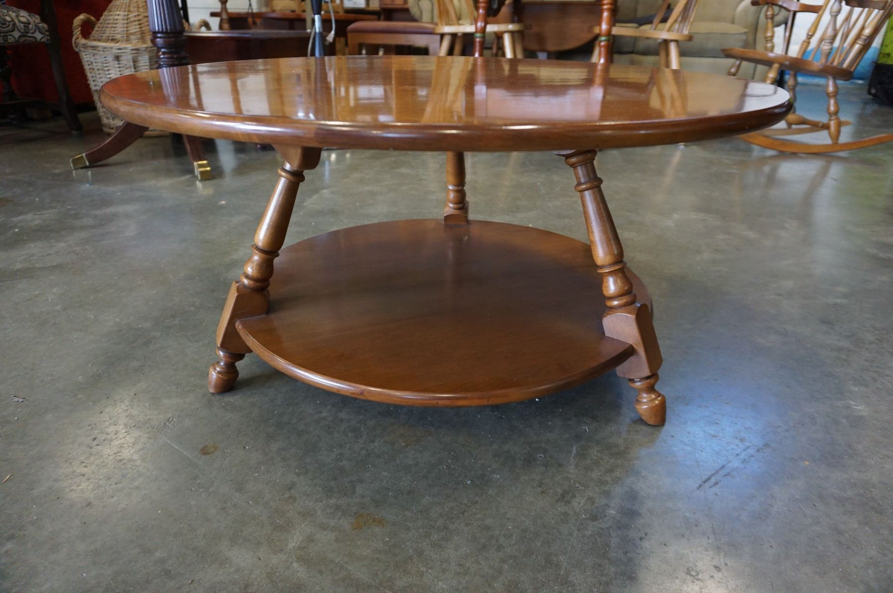 MCM WOOD ROUND COFFEE TABLE W/ SPINDLE LEGS