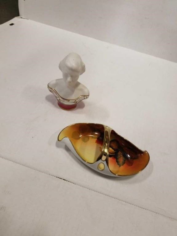MEITO CHINA HAND PAINTED DISH AND FOLEY BONE CHINA BUST QUEEN ELIZABETH