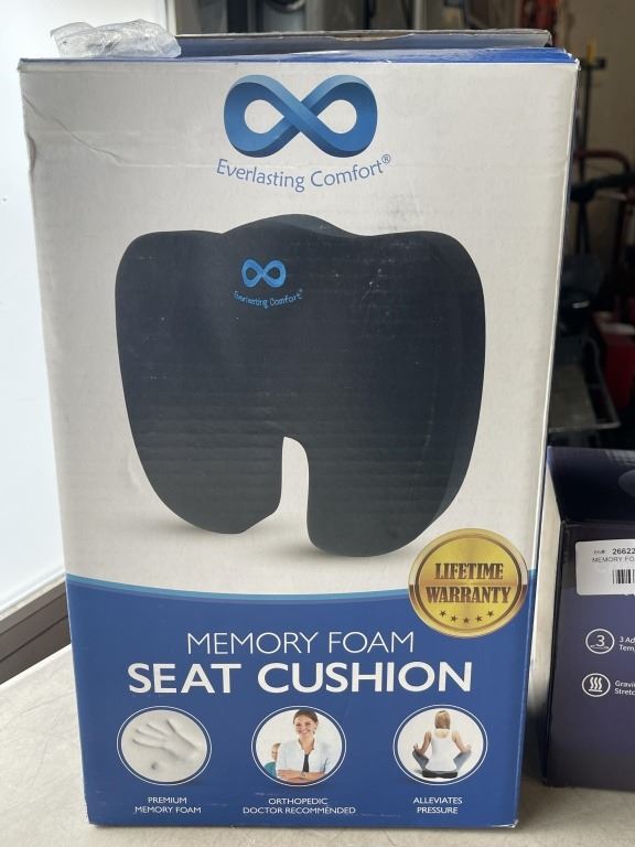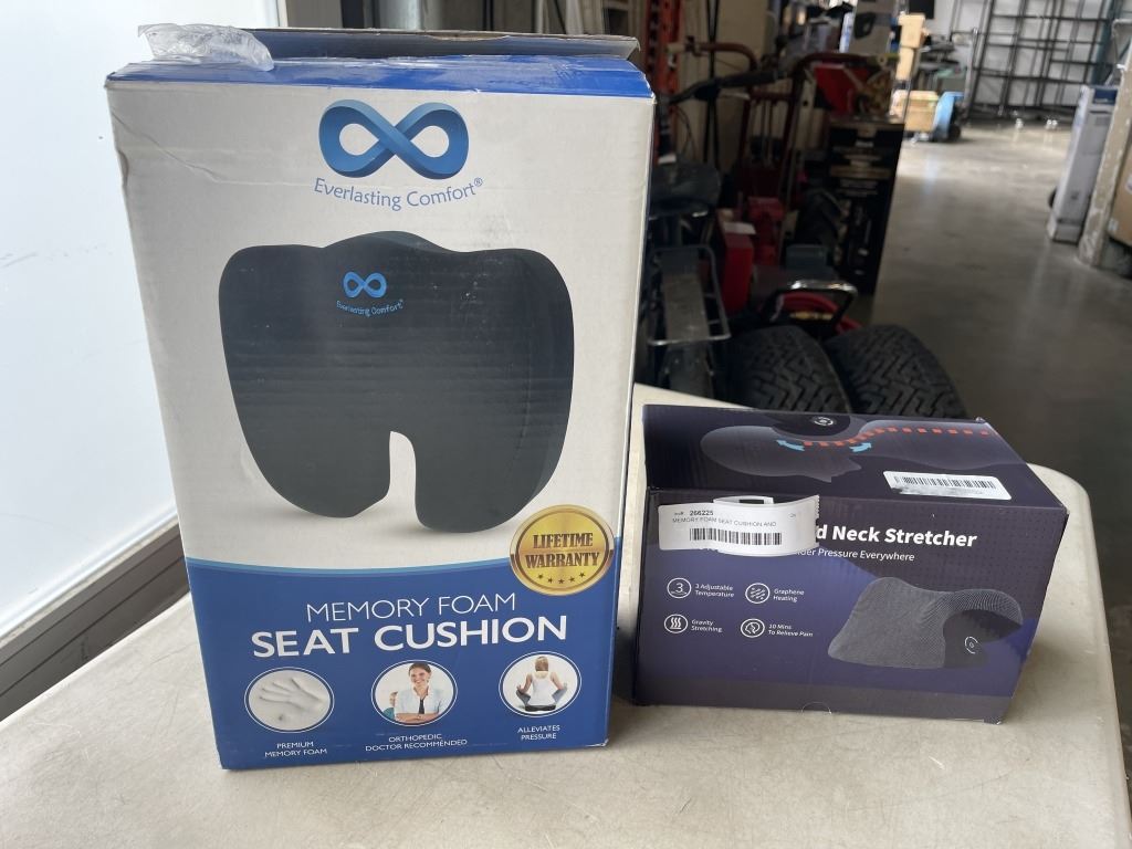 MEMORY FOAM SEAT CUSHION AND CORDLESS NECK STRETCHER