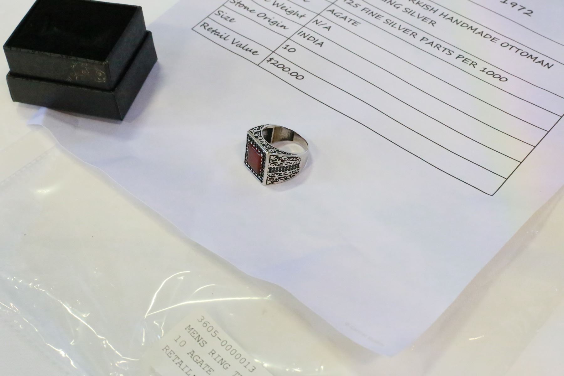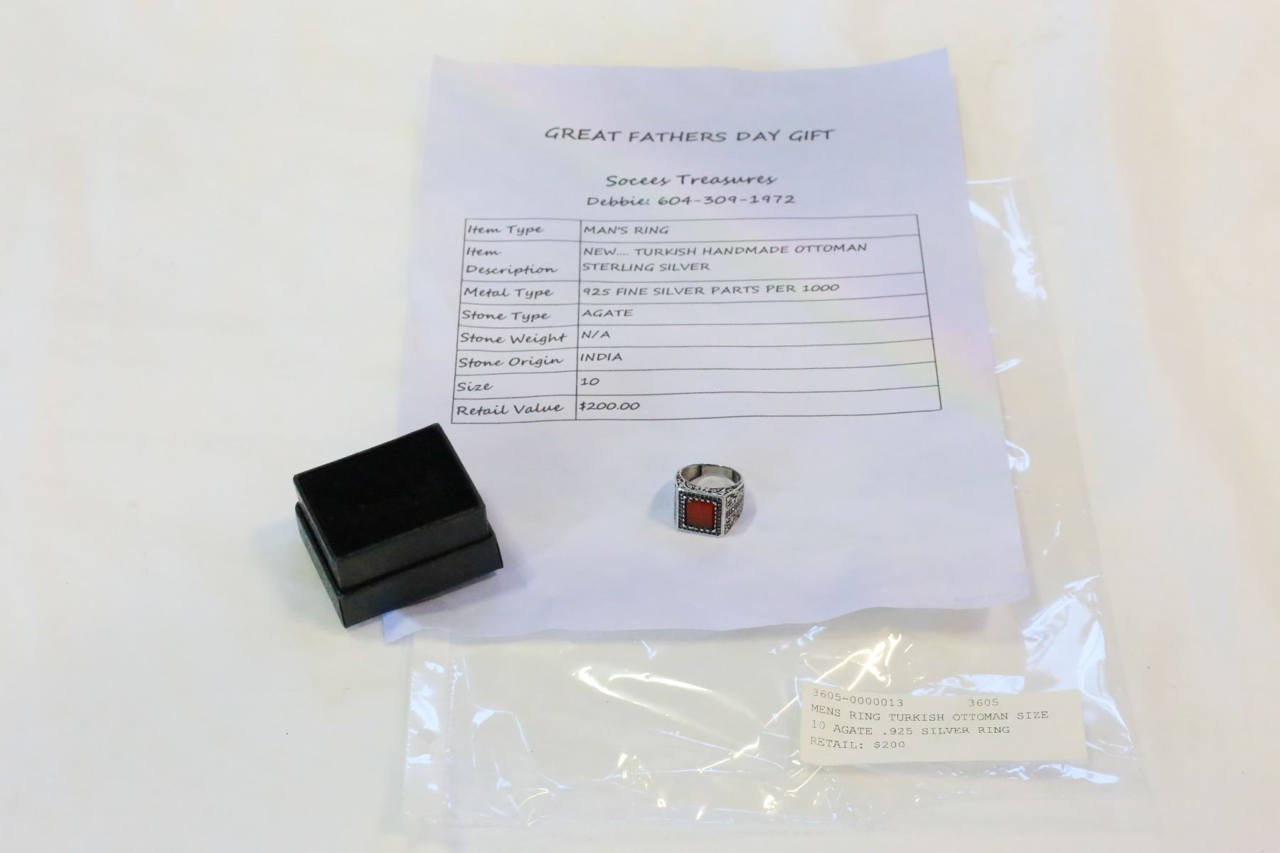 MENS RING TURKISH OTTOMAN SIZE 10 AGATE .925 SILVER RING RETAIL: $200