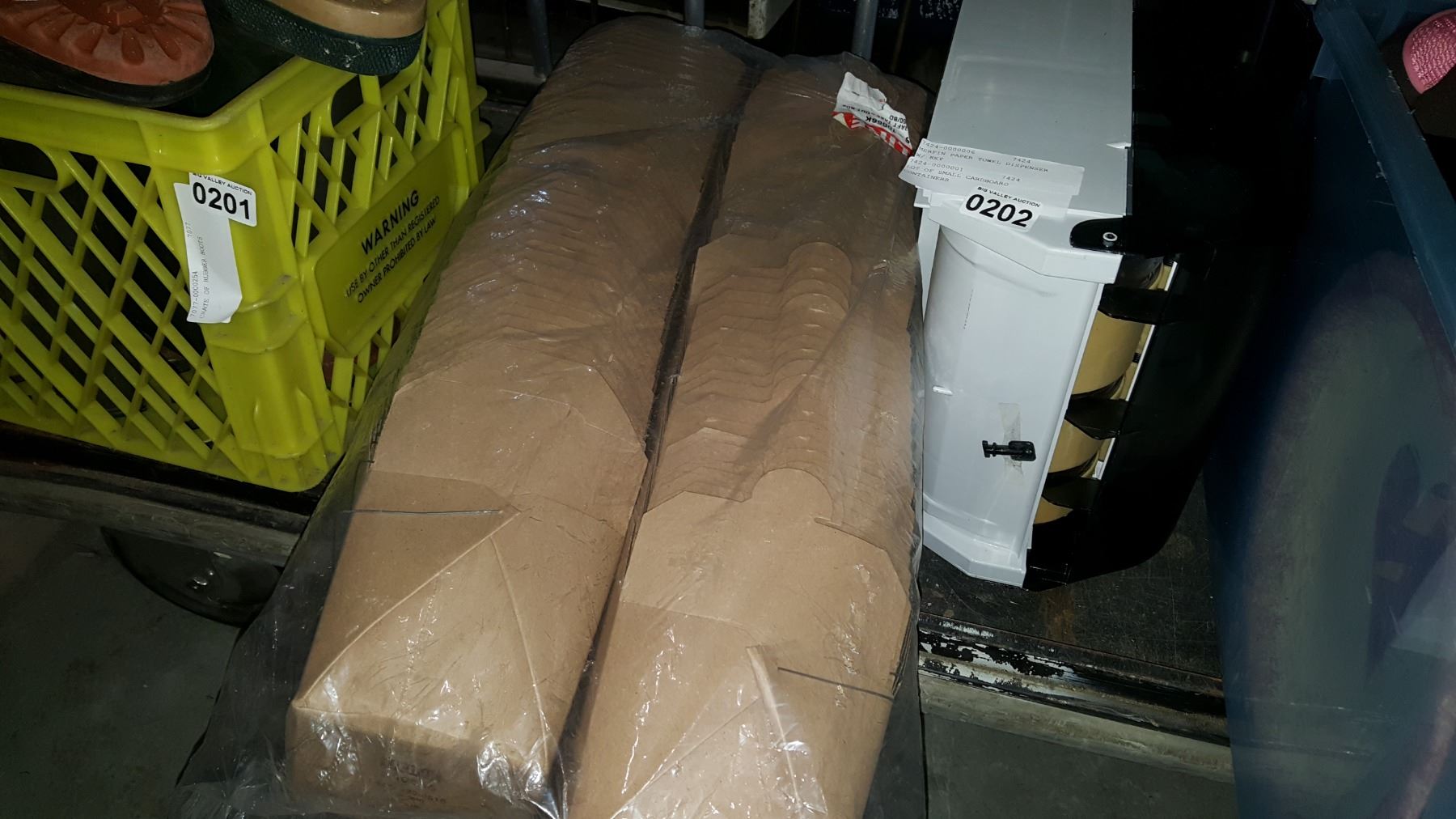 MERFIN PAPER TOWEL DISPENSER W/ KEY AND SMALL CARDBOARD CONTAINERS