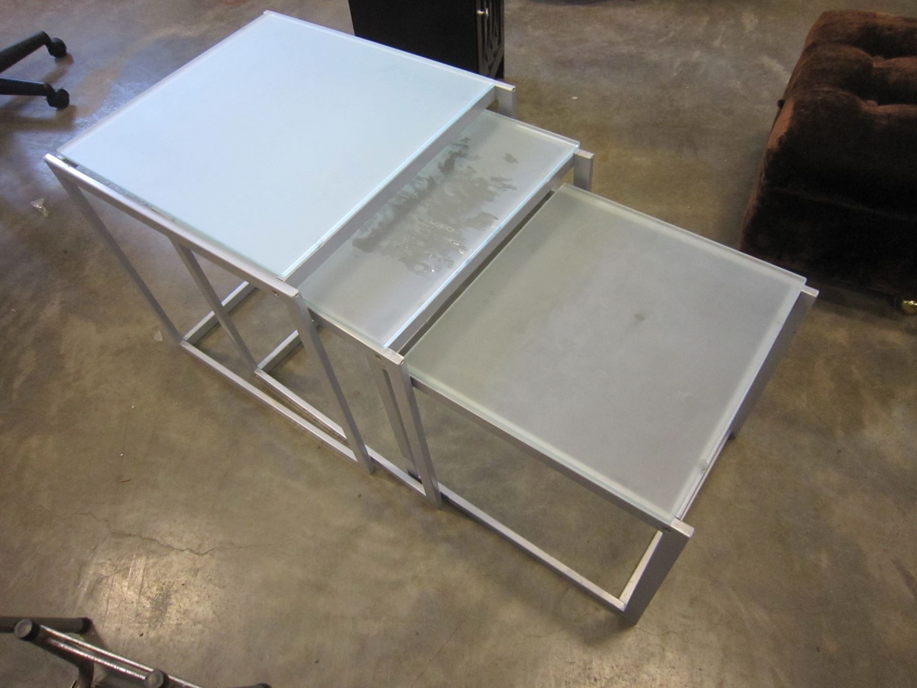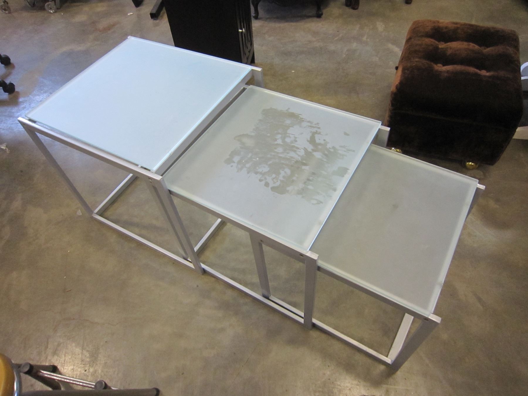 METAL 3PC GLASSTOP NESTING TABLE SET