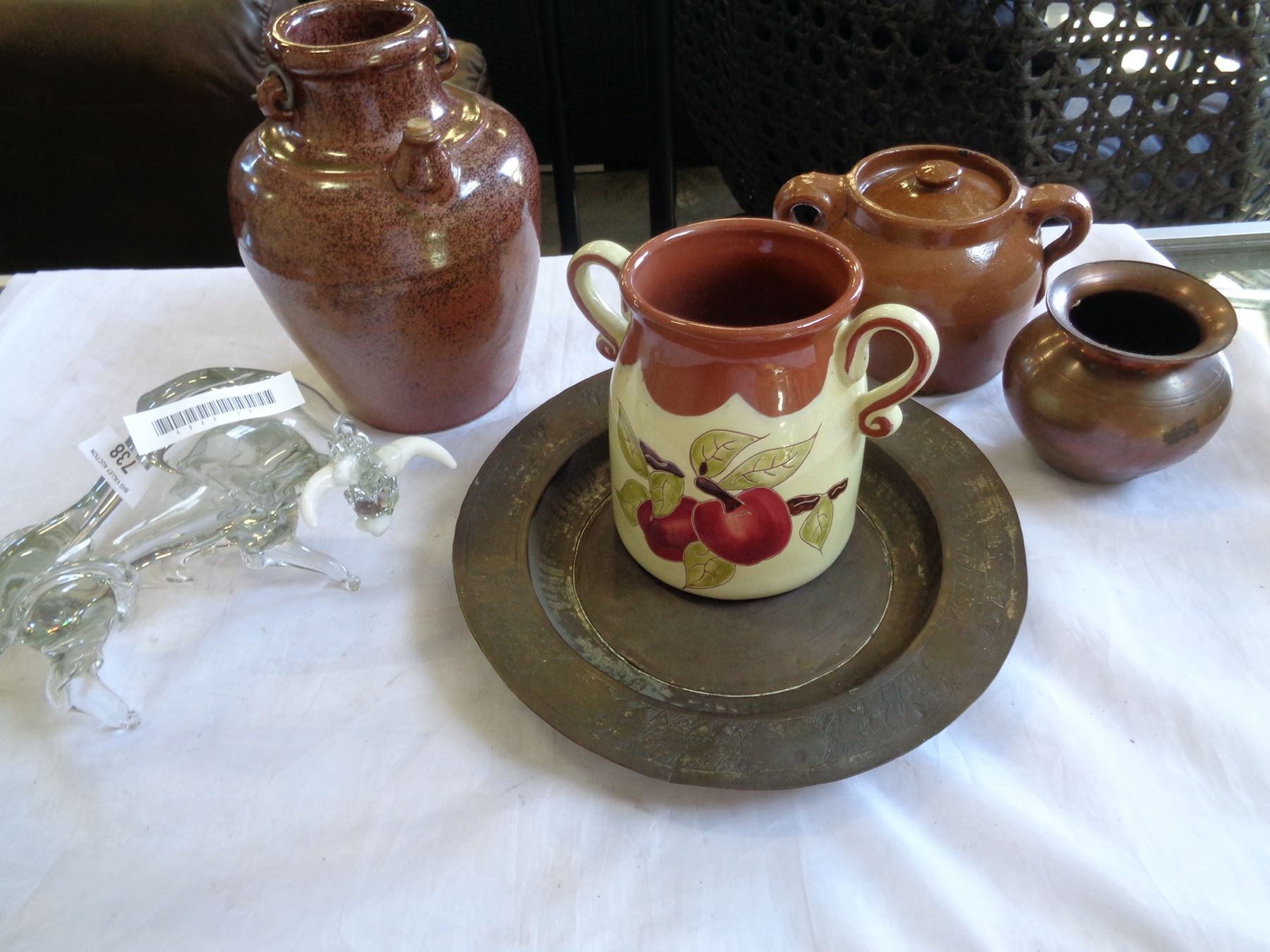 METAL AND CERAMIC COLLECTIBLES W/ GLASS BULL