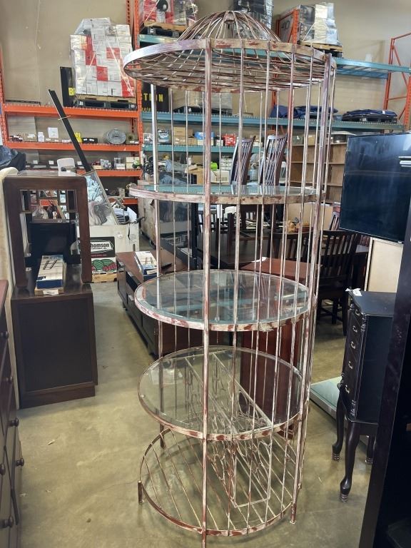 METAL AND GLASS SHELF WITH BUILT IN WINE HOLDER