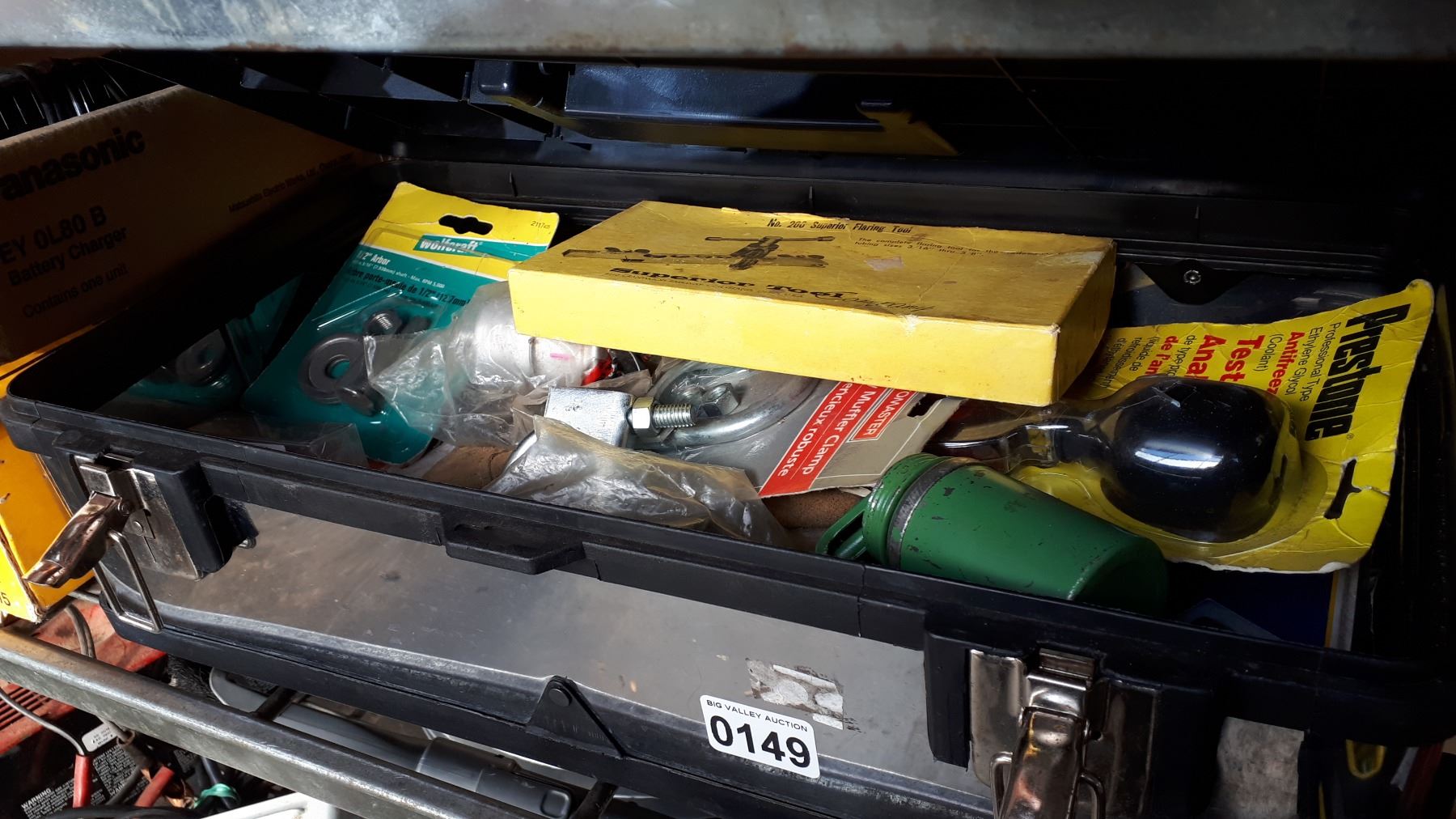 METAL AND PLASTIC TOOL BOX WITH CONTENTS