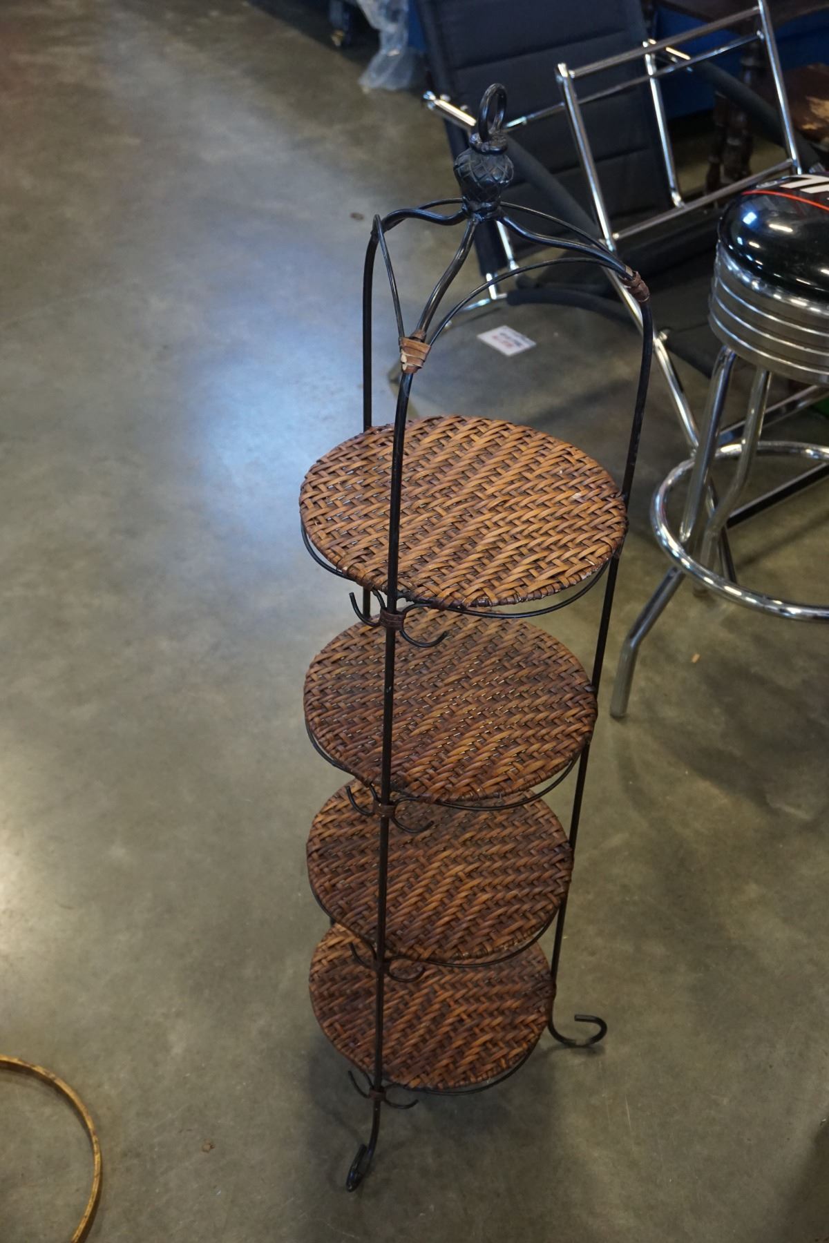 METAL AND RATTAN 4 SHELF PLANT STAND