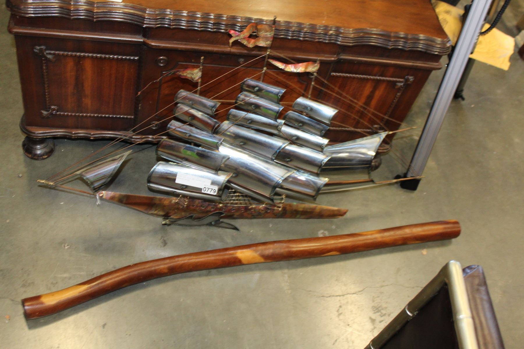 METAL ART SHIP AND AUSTRALIAN WALKING STICK