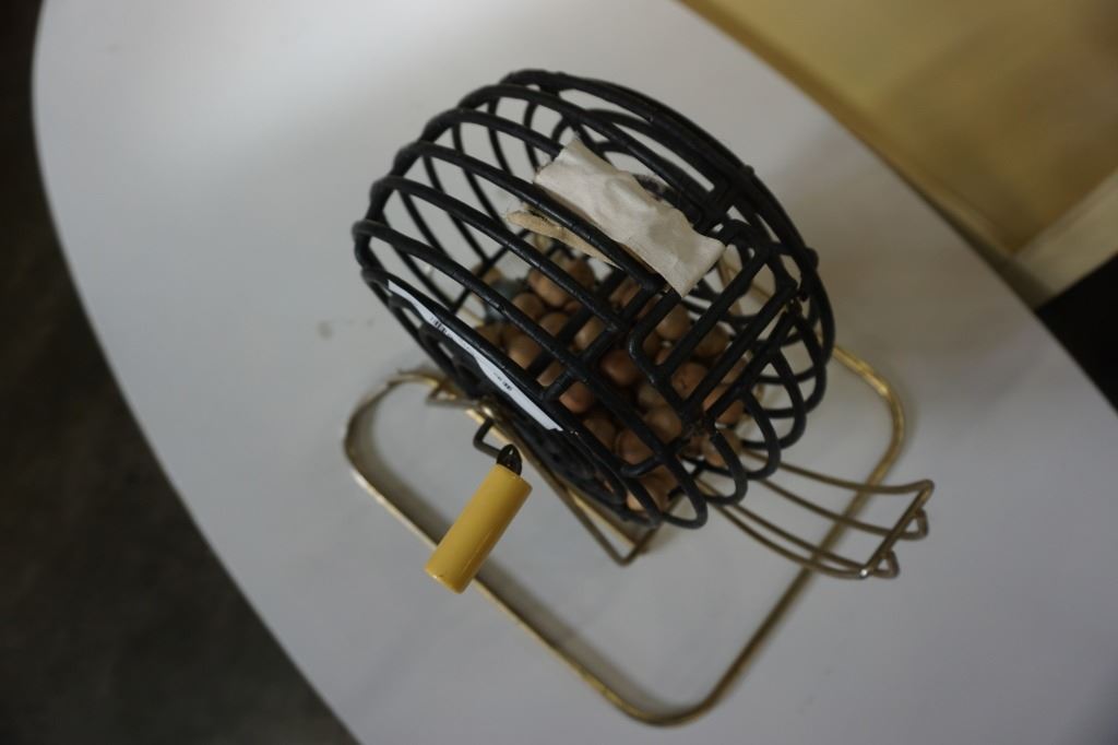 METAL BINGO ROLLER CAGE WITH BINGO BALLS