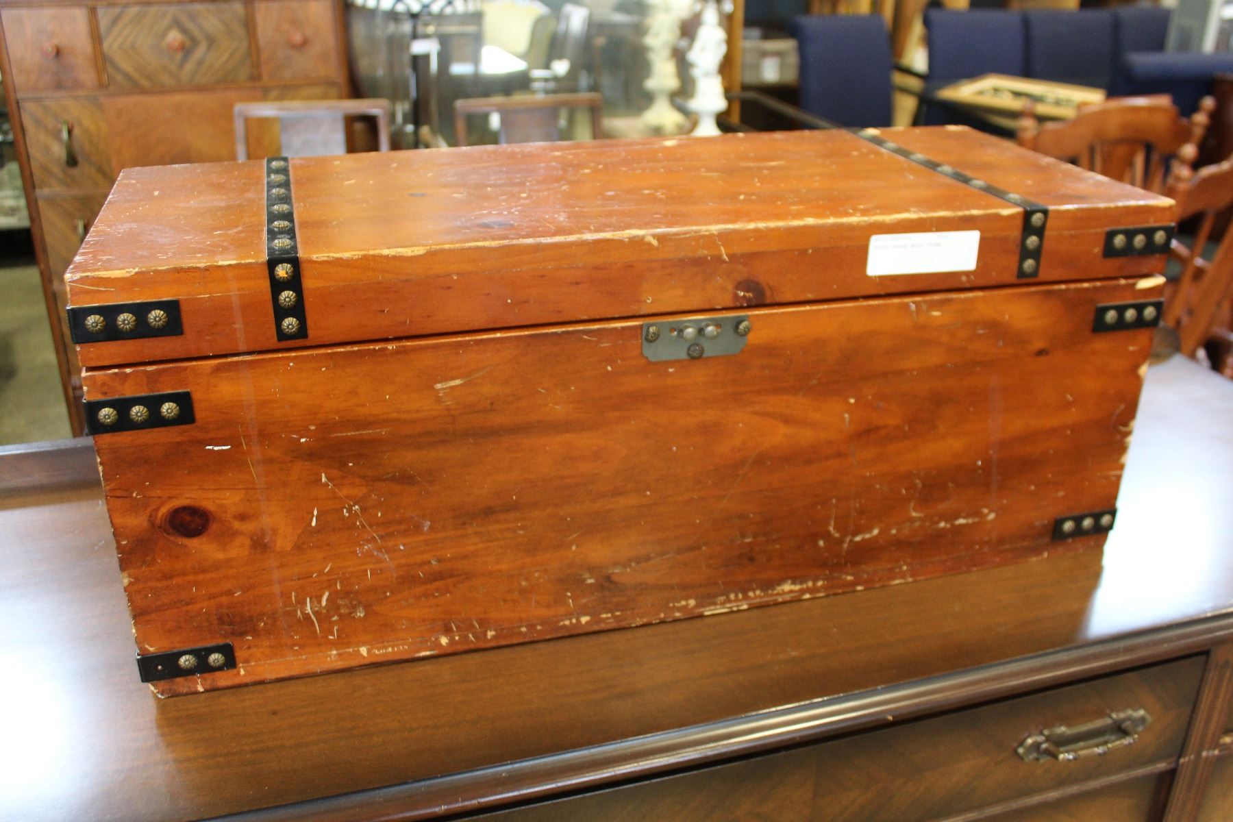 METAL BOUND WOOD TRUNK