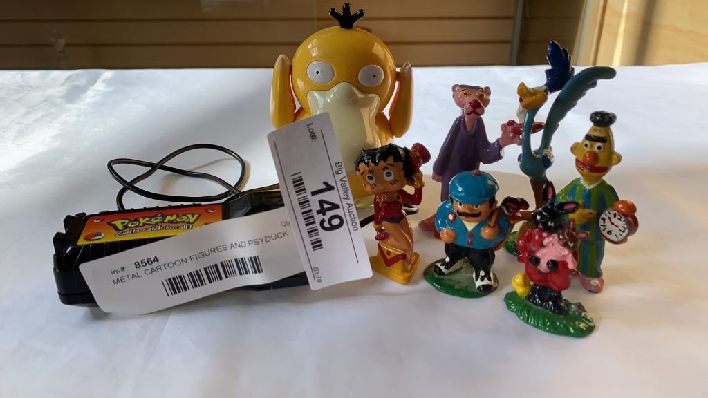 METAL CARTOON FIGURES AND PSYDUCK POKEMON RC TOY