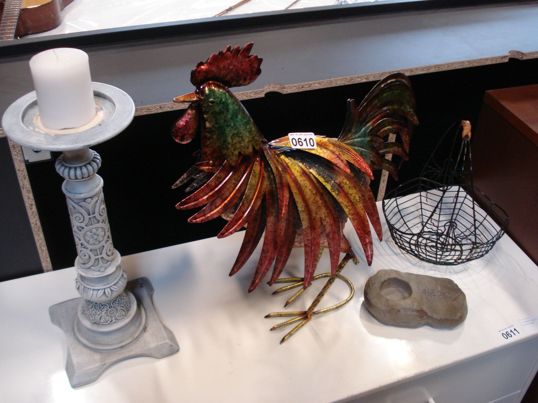 METAL CHICKEN LARGE CANDLE HOLDER AND BASKET