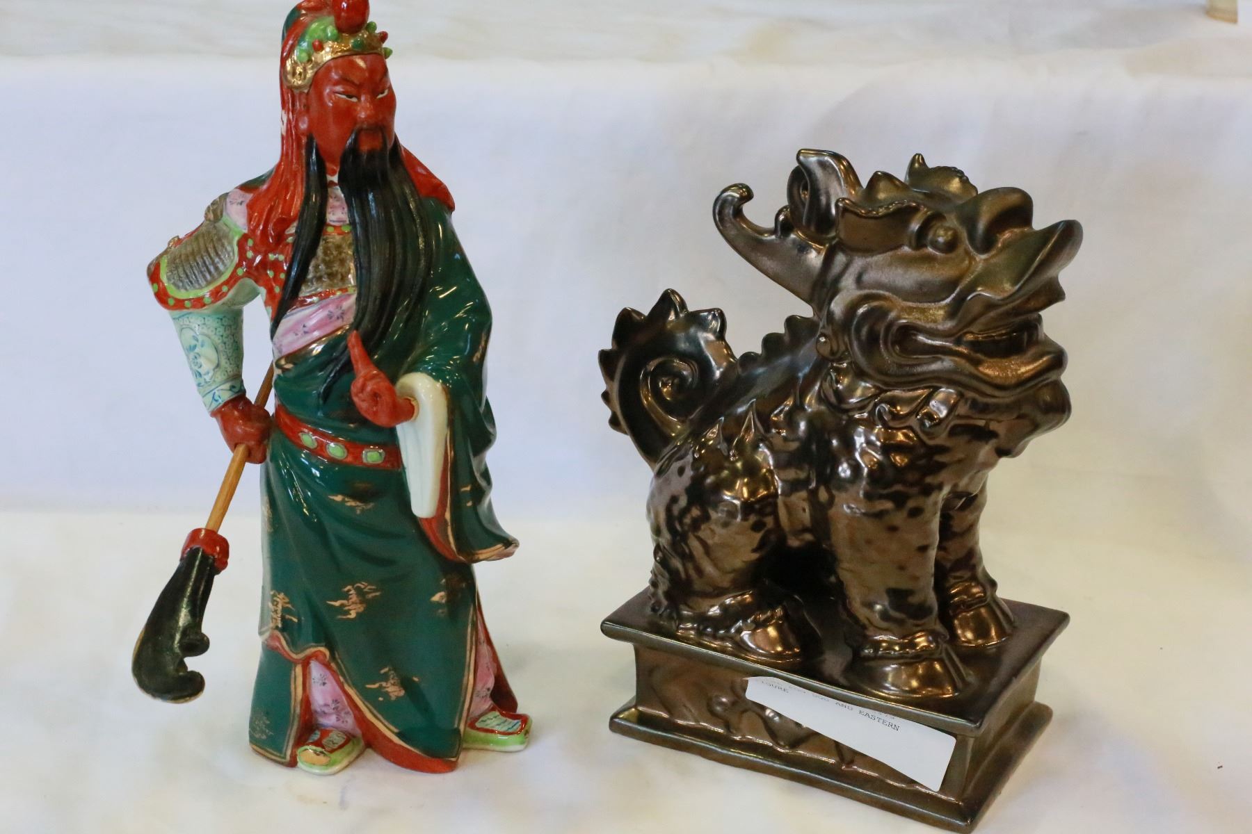 METAL FOO DOG AND EASTERN FIGURE