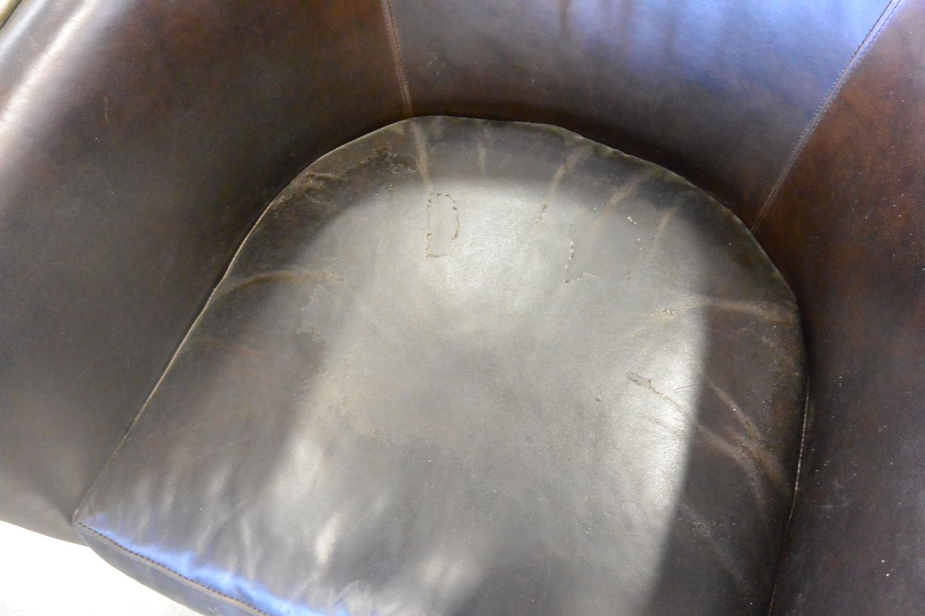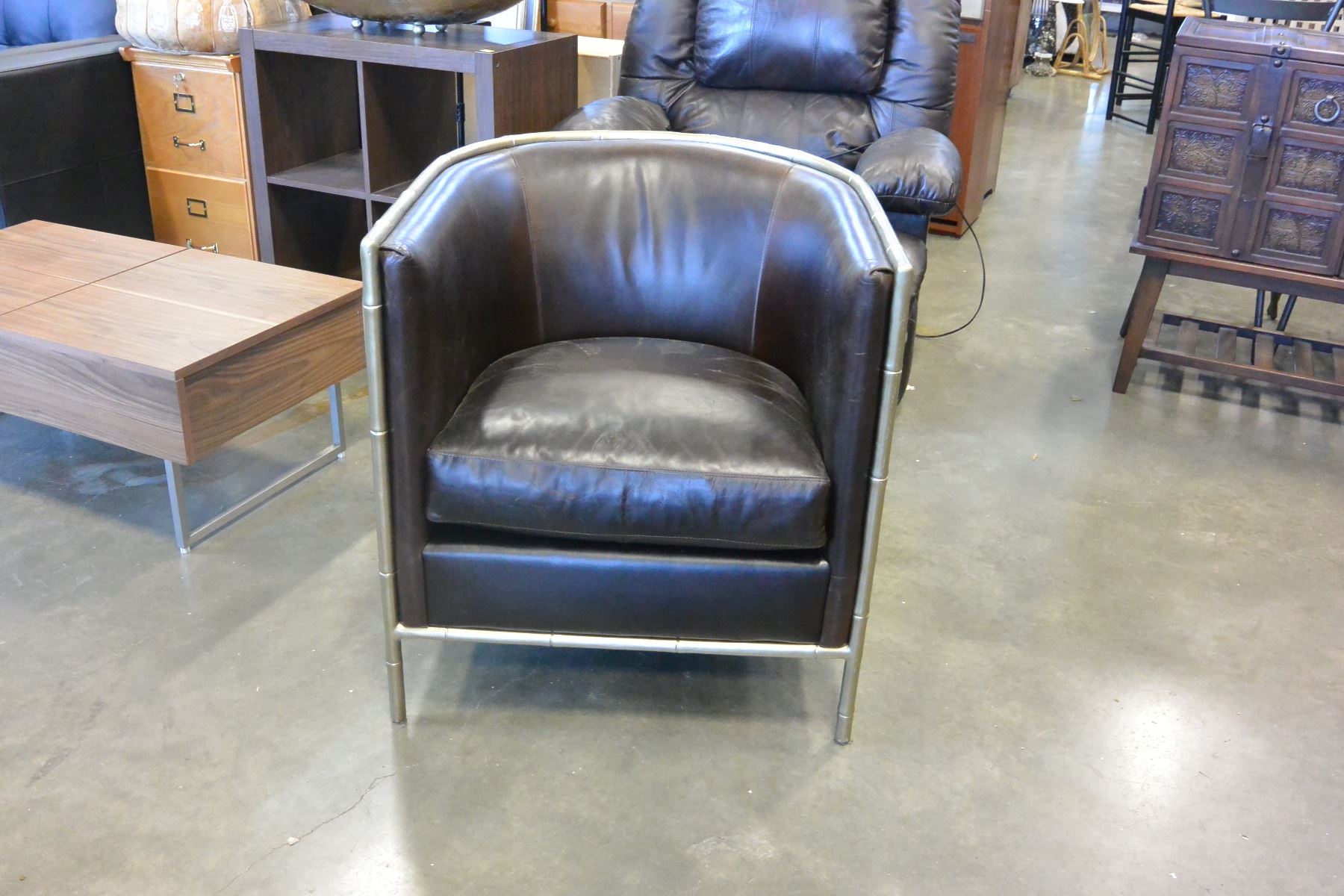 METAL FRAMED LEATHER BUCKET CHAIR