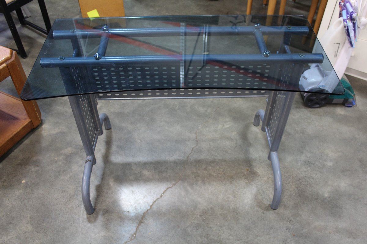 METAL GLASSTOP COMPUTER DESK