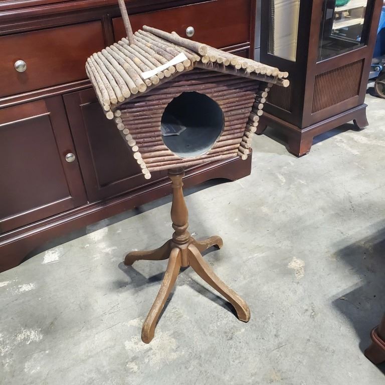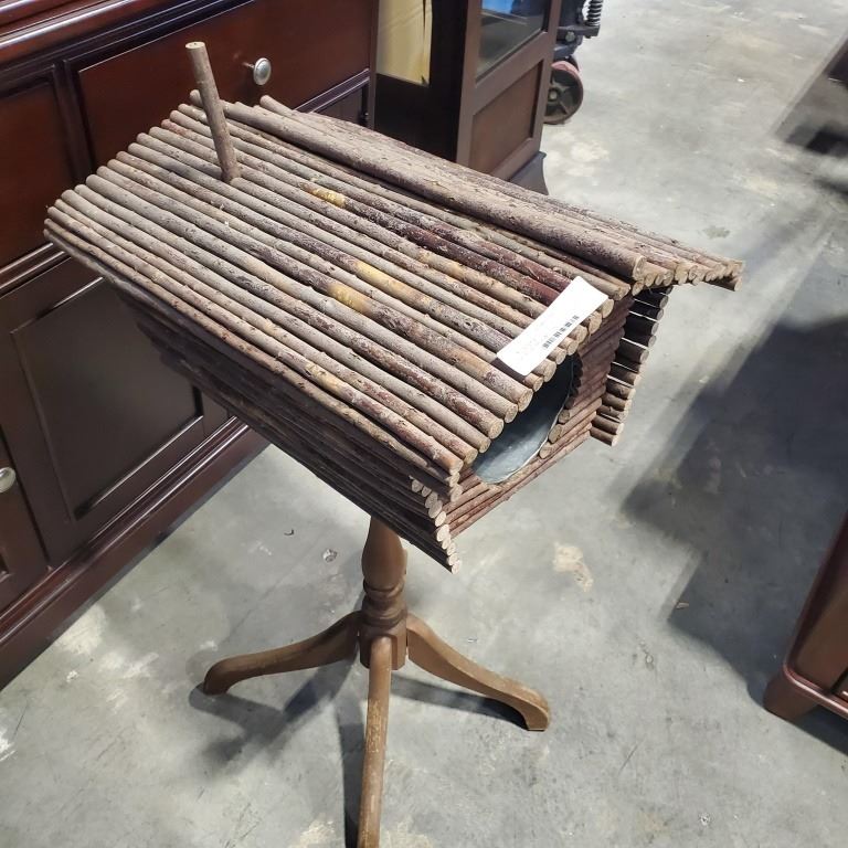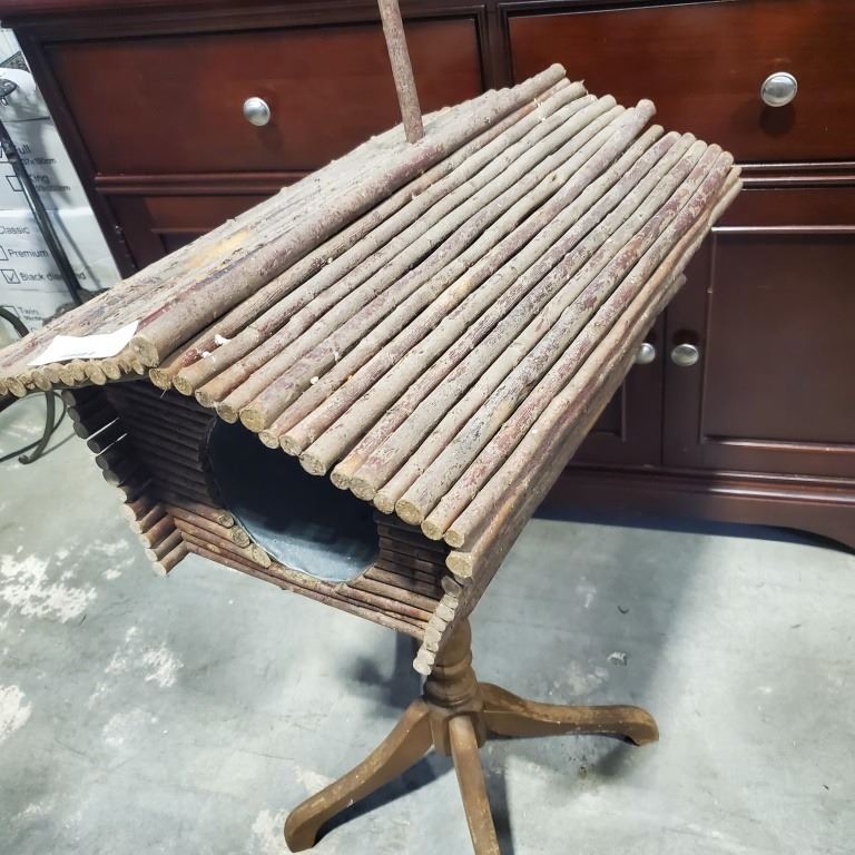 METAL INTERIOR WOODEN LOG STYLE BIRD HOUSE MAILBOX ON STAND