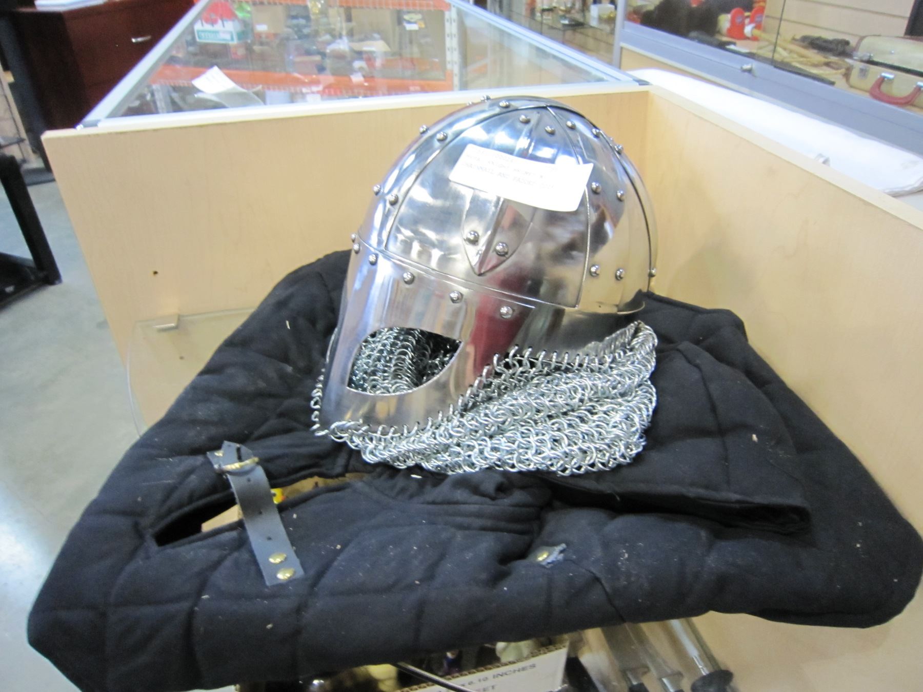 METAL KNIGHT HELMET W/ CHAINMAIL AND PADDED COIF