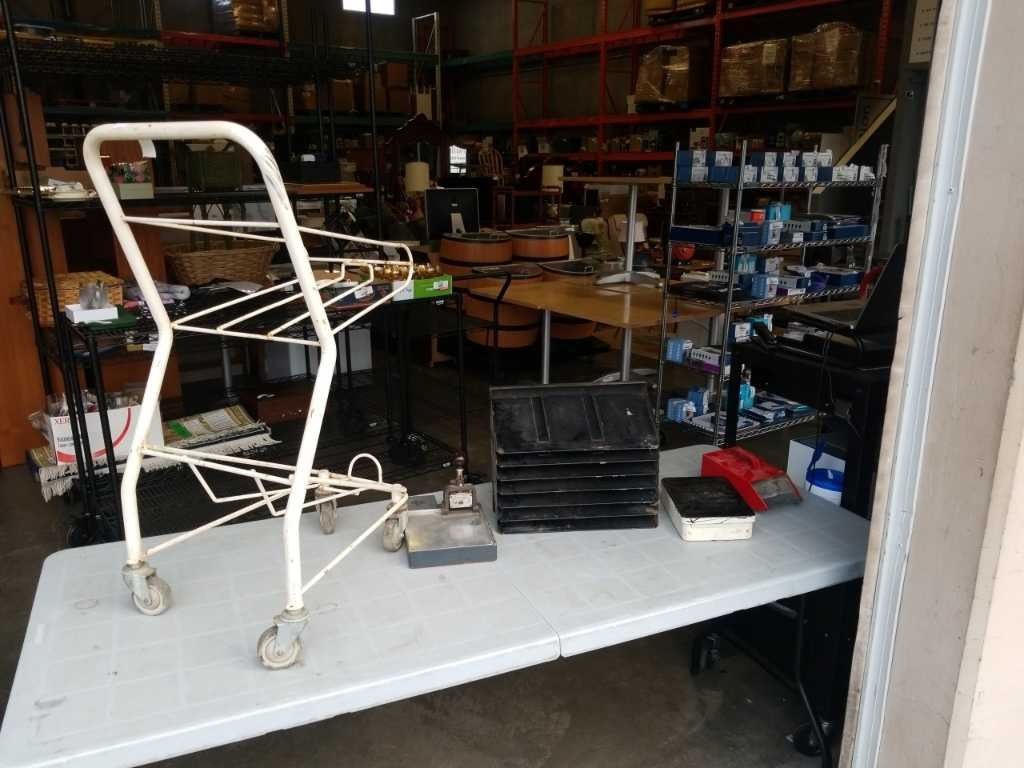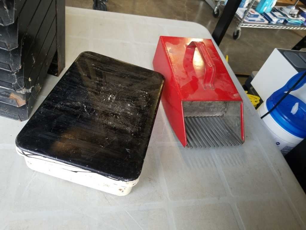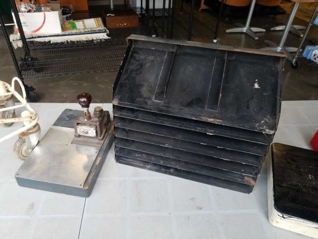 METAL ORGANIZER SHELF, BERRY PICKING SCOOP, METAL CASE, STAMP, AND 2 TIER CART