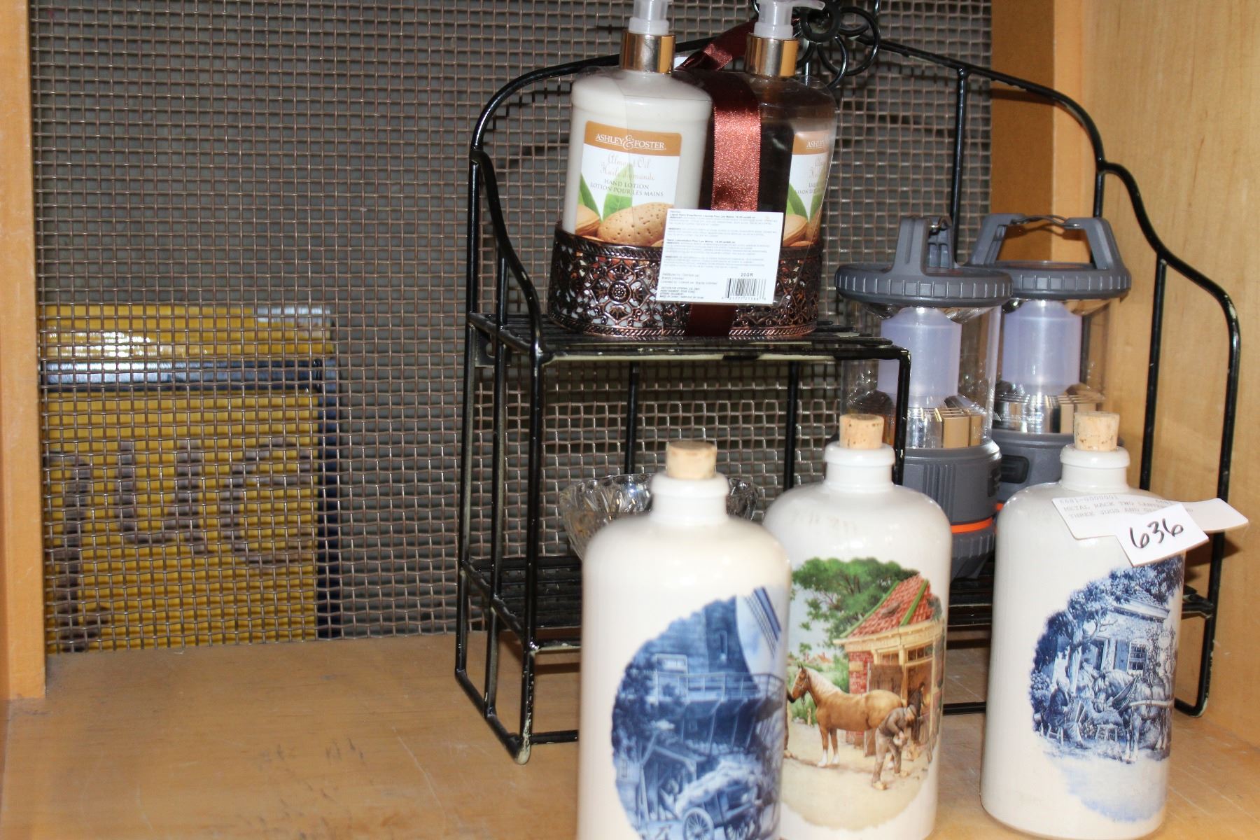 METAL RACK TWO LANTERNS AND THREE JUGS AND GIFT SET