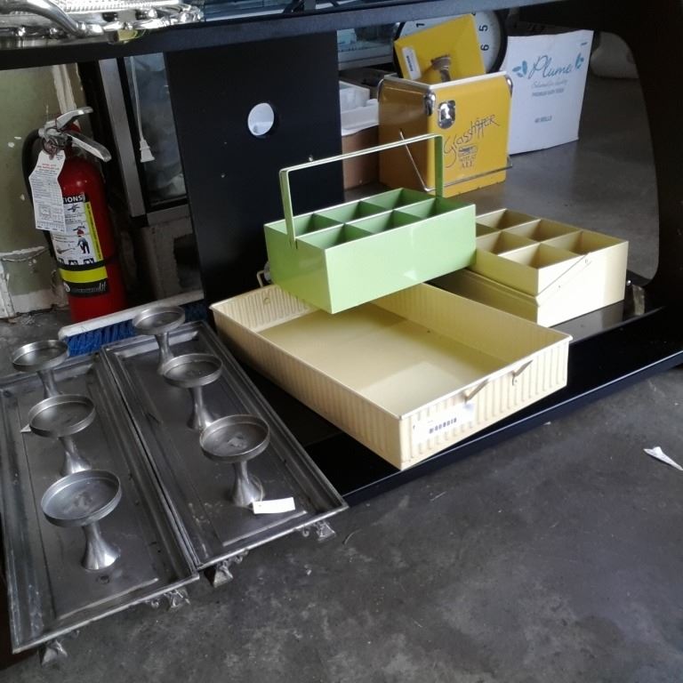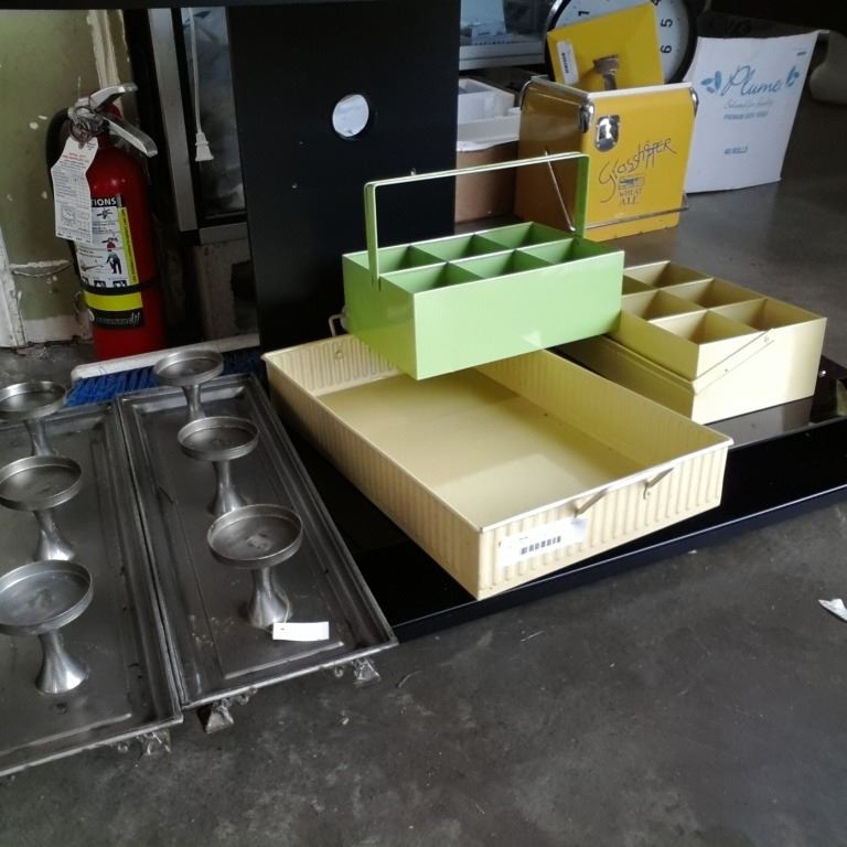 METAL TRAY WITH METAL CARRY ORGANIZERS AND CANDLE STANDS