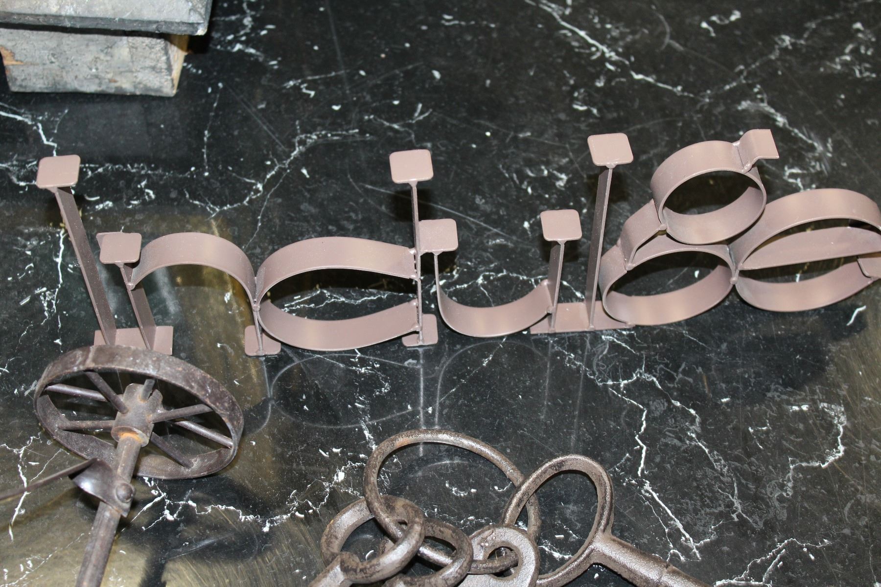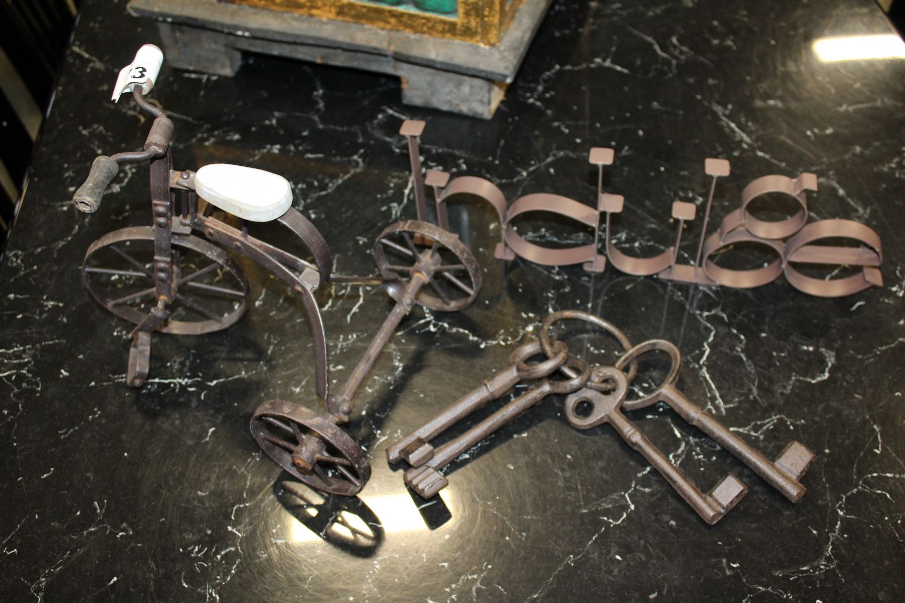 METAL TRIKE AND SKELETON KEYS AND SIGN